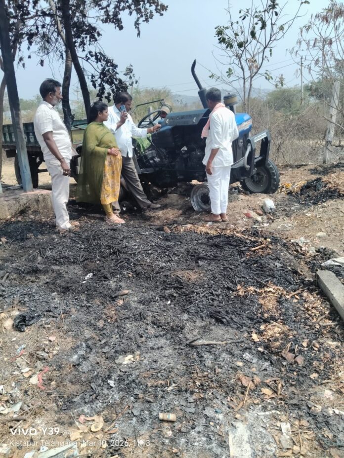 నేటి సాక్షి,నారాయణపేట, మార్చు 10, ( రిపోర్టర్ ఇమామ్ ), నారాయణపేట జిల్లాలోని ధన్వాడ మండలం రామకృష్ణయ్య పల్లి గ్రామంలోని గ్రామపంచాయతీకి సంబంధించిన ట్రాక్టర్ సోమవారం మధ్యాహ్నం ప్రాంతంలో రెండున్నర, మూడు గంటల ప్రాంతంలో డంపింగ్ యార్డ్ పక్కన నిలిచి ఉన్న గ్రామపంచాయతీ ట్రాక్టర్ నిప్పంటుకున్నదని రామకృష్ణయ్య పల్లి గ్రామ పంచాయతీ కార్యదర్శి యశోద, రామకృష్ణయ్య పల్లి గ్రామ సర్పంచ్ పాల్వ కవిత తిరుపతయ్య నాయకులు పరిశీలించి ఇట్టి సంఘటనపై మంగళవారం నాడు ధన్వాడ పోలీస్ స్టేషన్ లో వారు ఫిర్యాదు చేసినట్లు స్థానిక విలేకరులతో తెలిపారు.
