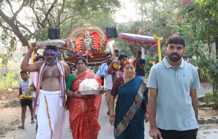 నేటి సాక్షి తిరుపతి *తిరుపతి రూరల్* తిరుమల తరహాలో తుమ్మలగుంట లో శ్రీ కళ్యాణ వెంకటేశ్వరస్వామి వారి పార్వేట ఉత్సవం ఘనంగా నిర్వహించారు. శుక్రవారం కనుమ పండుగను పురస్కరించుకొని శ్రీ కళ్యాణ వెంకన్న పశు పక్షాదుల సంరక్షణ నిమిత్తం సాంప్రదాయ బద్దంగా నిర్వహించిన పార్వేట ఉత్సవం ఎంతో వేడుకగా సాగింది. తుమ్మలగుంట ఆలయం నుంచి శ్రీ కళ్యాణ వెంకన్న పంచ ఆయుధాలతో ఊరేగింపుగా బయలుదేరి నలందానగర్లోని పార్వేటమండపానికి చేరుకున్నారు. అక్కడ కళ్యాణ వెంకన్నను అర్చకస్వాములు వేంచేపు చేశారు. అనంతరం ఆరాధనం, నివేదన, హారతులు పట్టారు. వేదం, గోవిందుని సంకీర్తనలు ఆలపించి పార్వేటను నిర్వహించారు. శ్రీ కళ్యాణ వెంకన్న స్వామి వారి తరపున అర్చకులు కొంత దూరం పరుగెత్తి బాణం వేసి వెనుకకు విచ్చేశారు. అంతకు ముందు ఆలయం వద్ద కళ్యాణ వెంకన్నకు హారతి పట్టిన తుడా మాజీ ఛైర్మన్ చెవిరెడ్డి మోహిత్రెడ్డి పల్లకీని పార్వేట మండపం వరకు మోశారు. పార్వేట ఉత్సవానికి బయలుదేరిన కళ్యాణ వెంకన్నకు భక్తులు అడుగడుగునా కర్పూర హారతలు పట్టారు. ఈ ఉత్సవంలో చెవిరెడ్డి రఘునాథరెడ్డి దంపతులతో పాటు గ్రామస్తులు పెద్ద ఎత్తున పాల్గొన్నారు.*గ్రామదేవతలకు ప్రత్యేక పూజలు* కనుమ పండుగను పురస్కరించుకొని తుమ్మలగుంట గ్రామంలోని గ్రామ దేవతలకు ప్రత్యేకంగా పూజలు నిర్వహించారు. గ్రామస్తులు అందరితో కలసి గ్రామ శివార్లలోని చిట్లా కుప్పకు నిప్పు పెట్టే కార్యక్రమాన్ని వేడుకగా నిర్వహించారు. పశుసంపదతో పాటు పాడి పంటలు అభివృద్ధి చెందాలని ఆకాంక్షించారు. పల్లె సాంప్రదాయాలను ప్రతి ఒక్కరు గౌరవించి అనుసరించాలని చెవిరెడ్డి మోహిత్రెడ్డి పిలుపునిచ్చారు.