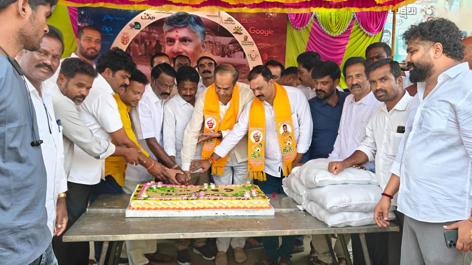 నేటి సాక్షి న్యూస్ చౌడేపల్లి ఏప్రిల్ 20 కూటమి ప్రభుత్వ ముఖ్యమంత్రి నారా చంద్రబాబు నాయుడు ఆధ్వర్యంలోనే రాష్ట్రం సర్వతో ముఖాభివృద్ధి చెందుతుందని నియోజకవర్గం తెలుగుదేశం పార్టీ సీనియర్ నాయకుడు మాదిరాజు లక్ష్మణ పతి రాజు అన్నారు .సోమవారం ముఖ్యమంత్రి తెలుగుదేశం పార్టీ జాతీయ అధ్యక్షుడు నారా చంద్రబాబు నాయుడు జన్మదిన వేడుకలను స్థానిక బస్టాండ్ నందు ఘనంగా నిర్వహించారు. ఈ సందర్భంగా బస్టాండ్ నందు భారీ కేక్ కట్ చేసి అందరికీ పంచిపెట్టారు .అన్నదాన శిబిరాన్ని ఏర్పాటు చేశారు. ఈ మేరకు ఆయన ప్రసంగిస్తూ ఆర్థికంగా చితికిపోయిన పరిస్థితిలో కూటమి ప్రభుత్వ రథసారథి నారా చంద్రబాబు నాయుడు సారథ్యంలో రాష్ట్రం అభివృద్ధి దిశగా పయనిస్తోందన్నారు .ఎన్నికల మేనిఫెస్టోలో ప్రకటించిన సూపర్ సిక్స్ అదేవిధంగా ప్రకటించనటువంటి కార్యక్రమాలను పూర్తి చేసిన ఘనత నారా చంద్రబాబు నాయుడుకు దక్కుతుందన్నారు. దేశంలోనే ఎక్కడా లేని విధంగా అనేక సంక్షేమ పథకాలు ప్రవేశపెట్టి ప్రజలకు చేరువయ్యారన్నారు. నవీన రాజకీయ నాయకులకు ఆయన ఆదర్శప్రాయుడని కొనియాడారు. అనంతరం అన్నదాన శిబిరాన్ని ఏర్పాటు చేశారు. ఈ కార్యక్రమంలో సింగిల్ విండో చైర్మన్ హరీ రాయల్ తెలుగుదేశం పార్టీ నాయకులు ఆవుల రామచంద్రయ్య వేలూరు సుబ్రహ్మణ్యం కార్తీక్ మురళి విద్యాసాగర్ బోయకొండ పవన్ రామకృష్ణ శివప్ప పునీత్ రాజు కుంచి నరేష్ బోయకొండ గణేష్ తదితరులు పాల్గొన్నారు