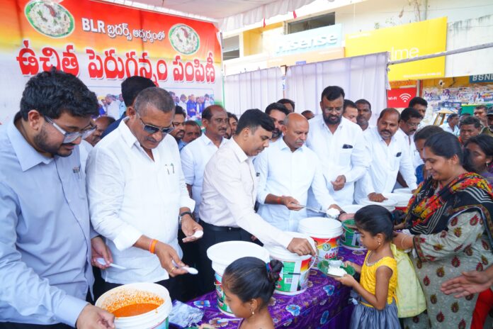 నేటిసాక్షి, మిర్యాలగూడ : ప్రస్తుత వేసవి కాలంలో ఎండ తీవ్రత పెరుగుతున్న దృష్ట్యా, నియోజకవర్గ ప్రజల మరియు బాటసారుల సౌకర్యార్థం శాసనసభ్యులు బత్తుల లక్ష్మారెడ్డి, బిఎల్ఆర్ బ్రదర్స్ ఆధ్వర్యంలో పట్టణంలోని 7ప్రధాన కూడలుల వద్ద ఏర్పాటు చేసిన చలివేంద్రాలను ,ఎమ్మెల్సీ కేతావత్ శంకర్ నాయక్, నల్లగొండ జిల్లా కలెక్టర్ చంద్రశేఖర్, మిర్యాలగూడ సబ్ కలెక్టర్ అమిత్ నారాయణ లు ప్రారంభించి, ప్రజలకు, బాటసారులకు త్రాగునీరు పంపిణీ చేశారు. అనంతరం బిఎల్ఆర్ ఆధ్వర్యంలో ప్రతిరోజు 3వేల మందికి పంపిణీ చేసే ఉచిత పెరుగన్నం పంపిణీ 9వ రోజు కార్యక్రమంలో కలెక్టర్ చంద్రశేఖర్ పాల్గొని, పెరుగన్నం పంపిణీ చేసి, ప్రజలు మరియు నాయకులతో కలిసి పెరుగన్నం తిన్నారు. ఈ సందర్భంగా జిల్లా కలెక్టర్ చంద్రశేఖర్ మాట్లాడుతూ, “పెరుగుతున్న ఎండల దృష్ట్యా సామాన్య ప్రజలు, ప్రయాణికులు మరియు కూలీలు తీవ్ర ఇబ్బందులు పడుతున్నారని, వారి దాహం తీర్చేందుకు చల్లని తాగునీరు అందించాలనే ఉద్దేశంతో ఎమ్మెల్యే బిఎల్ఆర్ పట్టణంలోని ప్రధాన కూడలిల వద్ద చలివేంద్రాలు ఏర్పాటు చేయడమే కాకుండా, పట్టణంలో ప్రతిరోజు 3 వేల మందికి ఉచిత పెరుగన్నం పంపిణీ చేయడం చాలా అభినందనీయం అన్నారు. ఈ కార్యక్రమంలో స్థానిక కాంగ్రెస్ పార్టీ నాయకులు, కౌన్సిలర్లు, సర్పంచ్ లు, ప్రజా ప్రతినిధులు, కార్యకర్తలు మరియు బిఎల్ఆర్ బ్రదర్స్ తదితరులు పాల్గొన్నారు.