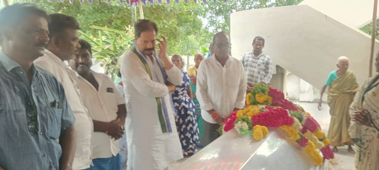 నేటి సాక్షి, బాపట్ల జిల్లా (పిట్టలవాని పాలెం)వైఎస్ఆర్సిపి పార్టీ సీనియర్ నాయకులు,అల్లూరు గ్రామ వైఎస్ఆర్సిపి అధ్యక్షులు సొసైటీ మాజీ సభ్యులు అక్కల చిన్న రాజారెడ్డి అనారోగ్యంతో రాత్రి స్వగ్రామం అల్లూరు లో మృతి చెందారు. విషయం తెలుసుకున్న వైయస్సార్ సిపి బాపట్ల నియోజకవర్గం సమన్వయకర్త, మాజీ డిప్యూటీ స్పీకర్ కోన రఘుపతి గారు అల్లూరు గ్రామానికి వచ్చి చిన్న రాజారెడ్డి భౌతికాయంపై పూలమాలలు ఉంచి నివాళులర్పించారు. నివాళులర్పించిన వారిలో పిట్టలవానిపాలెం మండల అధ్యక్షు లు ఉయ్యూరి లీలా శ్రీనివాస్ రెడ్డి, పార్టీ నాయకులు వాలి శివారెడ్డి, మండే విజయ్ కుమార్, బడుగు ప్రకాష్, శివకృష్ణారెడ్డి తదితరులు ఉన్నారు.