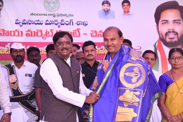 నేటి సాక్షి మార్చి 11 (మంచిర్యాల్) శ్రీధర దమ్మ మంచిర్యాల జిల్లా,చెన్నూరు వ్యవసాయ మార్కెట్ కమిటీ చైర్మన్గా మహేశ్ ప్రసాద్ తివారీ ఘనంగా ప్రమాణ స్వీకారం చేశారు. ఈ కార్యక్రమానికి *కార్మిక మరియు మైనింగ్ శాఖ మంత్రి వివేక్ వెంకటస్వామి* జిల్లా కలెక్టర్ కుమార్ దీపక్తో కలిసి హాజరయ్యారు.మార్కెట్ కమిటీ కార్యాలయం ప్రాంగణంలో నిర్వహించిన ప్రమాణ స్వీకార కార్యక్రమంలో మహేశ్ ప్రసాద్ తివారీతో పాటు కమిటీ సభ్యులు కూడా పదవీ ప్రమాణం చేశారు. కార్యక్రమంలో మంత్రి వివేక్ వెంకటస్వామి కొత్తగా బాధ్యతలు చేపట్టిన చైర్మన్ మరియు సభ్యులకు అభినందనలు తెలిపారు. రైతులకు మరింత మెరుగైన సేవలు అందించేలా మార్కెట్ కమిటీ పని చేయాలని సూచించారు.ఈ ప్రమాణ స్వీకార మహోత్సవానికి స్థానిక ప్రజాప్రతినిధులు, నాయకులు, కాంగ్రెస్ పార్టీ కార్యకర్తలు మరియు పెద్ద ఎత్తున ప్రజలు పాల్గొన్నారు. కొత్త చైర్మన్కు శుభాకాంక్షలు తెలియజేస్తూ కార్యక్రమం ఉత్సాహంగా జరిగింది.