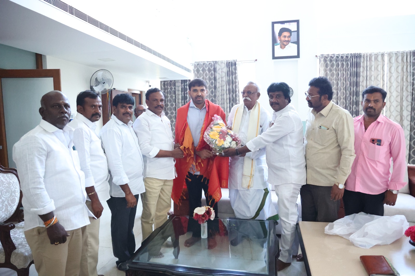నేటి సాక్షి తిరుపతి *తిరుపతి రూరల్* చంద్రగిరి నియోజకవర్గం వైఎస్ఆర్సీపీ సమన్వయకర్త, రాష్ట్ర యువజన విభాగం ప్రధాన కార్యదర్శి చెవిరెడ్డి మోహిత్రెడ్డిని గురువారం పలువురు రజక సంఘం నాయకులు మర్యాదపూర్వకంగా కలసి నూతన సంవత్సర, సంక్రాంతి శుభాకాంక్షలు తెలిపారు. అనంతరం అక్రమ కేసులో అరెస్టయిన చెవిరెడ్డి ఆరోగ్యం గురించి అడగి తెలుసుకున్నారు. రాజకీయ కక్షలతో చంద్రబాబు ప్రభుత్వం చెవిరెడ్డి కుటుంబాన్ని ఇంతలా వేదించడం సమంజసం కాదని అభిప్రాయపడ్డారు. చెవిరెడ్డి మోహిత్రెడ్డిని కలసిన వారిలో రాష్ట్ర వైయస్సార్ కాంగ్రెస్ పార్టీ కార్యవర్గ సభ్యులు, ఏపీ రజక వెల్ఫేర్ డెవలప్మెంట్ కార్పొరేషన్ మాజీ చైర్మన్ మీసాల రంగన్న, రాష్ట్ర వైయస్సార్ కాంగ్రెస్ పార్టీ రజక విభాగం అధ్యక్షులు పన్నీటి కాశయ్య, వైఎస్ఆర్సిపి కడప జిల్లా ప్రచార కమిటీ ఉపాధ్యక్షులు గోటూరి వెంకటేష్, పీలేరు మార్కెటింగ్ కమిటీ మాజీ సభ్యులు మద్దిరాల మల్లికార్జున, రణధీరపురం ఉపసర్పంచి మల్లెమొగ్గల ఉమాపతి, తిరుపతి రూరల్ బిసి సెల్ నాయకులు బెల్లంకొండ అంజి, చిత్తూరు జిల్లా వైఎస్ఆర్సిపి రజక విభాగం అధ్యక్షులు బి ఎన్ ప్రకాష్లు వున్నారు.
