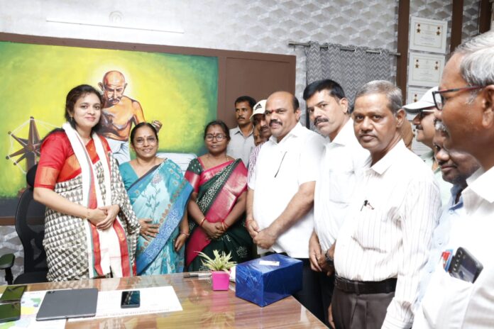నేటి సాక్షి,నారాయణపేట ఏప్రిల్ 27 ( రిపోర్టర్ ఇమామ్ సాబ్ ), నారాయణపేట జిల్లా నూతన కలెక్టర్ గా బాధ్యతలను స్వీకరించిన సిహెచ్ ప్రియాంక ఐఏఎస్ గారి ని పి ఆర్ టి యు టి ఎస్ నారాయణపేట జిల్లా శాఖ ఆధ్వర్యంలో సోమవారం వారి కార్యాలయంలో మర్యాదపూర్వకంగా కలిసి మొక్కను, నోటు పుస్తకాలను అందజేశి, సన్మానం చేశారు.ఈ సందర్భంగా వారు జిల్లా విద్యాశాఖ వివరాలను అడగడంతో పాటు, ప్రస్తుతము నిర్వహిస్తున్న జనగణనలో ఇండ్ల గుర్తింపును ఉపాధ్యాయులు స్వీయ నమోదును చేసుకోవడంతోపాటు వారు నివసిస్తున్న ప్రాంతాలలో వారికి తెలిసిన అందరినీ స్వీయ నమోదు చేసుకునేలా ప్రోత్సహించాలని సూచించారు. స్వీయ నమోదు పెరుగుదలకు పిఆర్టియు సంఘం ఆధ్వర్యంలో తప్పకుండా సహకరిస్తామని జిల్లా బాధ్యులు కలెక్టర్ గారికి తెలియజేశారు. అదేవిధంగా జిల్లాలో విద్యారంగ అభివృద్ధికి అందరం కలిసికట్టుగా పనిచేద్దామని తాను అందరికీ అందుబాటులో ఉంటానని అన్నారు ఈ కార్యక్రమంలో రాష్ట్ర అసోసియేట్ అధ్యక్షురాలు వరలక్ష్మి సంతోష్ కుమార్, శశిరేఖ బాలాజీ,జిల్లా అధ్యక్షులు యాద్గిర్ జనార్దన్ రెడ్డి, నారాయణపేట మండల అధ్యక్షులు ఎం. రఘువీర్,దామరగిద్ద మండల అధ్యక్ష, ప్రధాన కార్యదర్శులు సత్యనారాయణ రెడ్డి,రమేషు, జిల్లా సైన్స్ అధికారి భాను ప్రకాష్, రాష్ట్ర బాధ్యులు కే శ్రీనివాస్,జిల్లా బాధ్యులు విశ్వనాథ్, అరవింద్,బాలాజీ, పి అర్ టి యు సభ్యులు వెంకటేశ్వర్లు ,రైజావేగం, వేదవతి,శ్రీదేవి తదితరులు పాల్గొన్నారు.