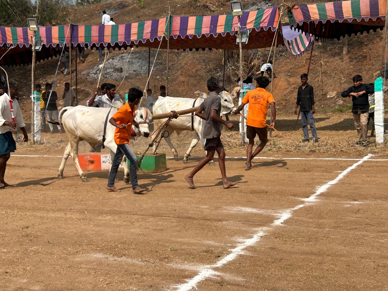 **నేటి సాక్షి చిలుకూరు .. చిలుకూరు మండల. బేతవోలు గ్రామం లో కనకదుర్గమ్మ జాతర శివరాత్రి పండుగ సందర్భంగా కాంగ్రెస్ పార్టీ ఆధ్వర్యంలో ఏర్పాటుచేసిన జాతీయ స్థాయి ఒంగోలు జాతి వృషభ రాజుల బండలాగుట ప్రదర్శన ను శుక్రవారం కోదాడ డీఎస్పీ శ్రీనివాస్ రెడ్డి ప్రారంభించారు ఈ సందర్భంగా ఆయన మాట్లాడుతూ ఎడ్ల పందాలను శాంతియుతంగా జరుపుకోవాలని సూచించారు మొదటిరోజు పాల పండ్ల ఎడ్ల పందేలు జరిగినాయి రెండో రోజు మూడో రోజులు శని ఆదివారం నాలుగు పళ్ళ ఎడ్ల విభాగం ఆరుపళ్ళ ఎడ్ల విభాగం ఆదివారం న్యూ కేటగిరి ఎడ్ల పందాలు జరుగుతాయని నిర్వాహకులు తెలిపారు జాతీయస్థాయి ఎడ్ల పందేలు లలో రైతులు అధిక సంఖ్యలో పాల్గొని విజయవంతం చేయాలని వారు కోరారు ఈ కార్యక్రమంలో సర్పంచ్ వట్టికూటి నాగయ్య ఉప సర్పంచ్ ఏడుకొండలు మాజీ ఎంపీపీ మాజీ జడ్పీటీసీలు మాజీ సర్పంచులు మాజీ ఎంపీపీలు కాంగ్రెస్ నాయకులు వార్డు సభ్యులు పాల్గొన్నారు…