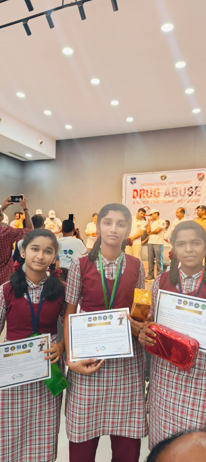 అంతర్జాతీయ డ్రగ్ డే సందర్భంగా కరీంనగర్ పోలీస్ కమిషనరేట్ పరిధిలో విద్యార్థులకు నిర్వహించిన చిత్రలేఖనంలో గన్నేరువరం మండల కేంద్రం చెందిన జడ్పీహెచ్ఎస్ పాఠశాలకు చెందిన ఏ.మానస, పత్తి. వైశాలి, బి. అక్షిత,9,10, తరగతి విద్యార్థులకు ప్రథమ, ద్వితీయ, తృతీయ బహుమతులను గురువారం రోజున కరీంనగర్ పోలీస్ హెడ్ క్వార్టర్స్ లో జరిగిన బహుమతి ప్రధానం జిల్లా కలెక్టర్ పమేలా సత్పతి మరియు కరీంనగర్ పోలీస్ కమిషనర్ ఆలం గౌస్ చేతుల మీదుగా బహుమతి ప్రధానం చేశారు. విద్యార్థులకు డ్రగ్ వల్ల కలిగే అనర్థాల గురించి మరియు అవగాహన తెలిపే చిత్రాలు గీయడంతో విద్యార్థులను అభినందించారు.ఈ కార్యక్రమంలో పాఠశాల ప్రధానోపాధ్యాయులు కే. రామయ్య, స్థానిక ఎస్సై నరేందర్ రెడ్డి,ఏఎస్ఐ లక్ష్మీనారాయణ విద్యార్థులను అభినందించారు.