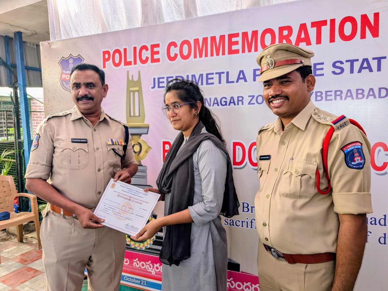 (నేటి సాక్షి ) పోలీసు అమరవీరుల దినోత్సవం సందర్భంగా జీడిమెట్ల పోలీస్స్టేషన్లో నిర్వహించిన మహా రక్తదాన శిబిరం ఆదర్శప్రాయంగా నిలిచింది. శనివారం ఉదయం ప్రారంభమైన ఈ కార్యక్రమానికి బాలానగర్ ఏసీపీ నరేశ్ రెడ్డి ముఖ్య అతిథిగా హాజరై రక్తదాతలను అభినందించారు. సైబరాబాద్ కమిషనర్ అవినాశ్ మహాంతి, డీసీపీ సేరేశ్ కుమార్ ఆదేశాల మేరకు ఈ శిబిరాన్ని ఇన్స్పెక్టర్ గడ్డం మల్లేష్ ఆధ్వర్యంలో విజయవంతంగా నిర్వహించారు.ఈ కార్యక్రమంలో పారిశ్రామికవేత్తలు, ఉద్యోగులు, కార్మికులు, రాజకీయ నాయకులు, యువత పెద్ద సంఖ్యలో పాల్గొని స్వచ్ఛందంగా రక్తదానం చేశారు. మొత్తం 410 మంది రక్తదాతలు రక్తం దానం చేయడం విశేషం.రక్తదాతలకు కృతజ్ఞతగా ఇన్స్పెక్టర్ గడ్డం మల్లేష్ హెల్మెట్లను బహూకరించారు. రహదారి భద్రతకు సంకేతంగా ఈ కార్యక్రమం ప్రత్యేకత సంతరించుకుంది. ఈ కార్యక్రమానికి ఈక్విటాస్, రామరాజు ఆసుపత్రి, వాక్సేసన్ పాఠశాలలు సహకరించాయి.రక్తదానం కారణంగా సుచిత్రలోని రష్య్ ఆసుపత్రిలో చికిత్స పొందుతున్న మూడేళ్ల చిన్నారి ప్రాణాలు నిలిచాయి. చిన్నారికి అరుదైన ఏ నెగెటివ్ రక్తం అవసరమని తెలిసిన వెంటనే జీడిమెట్ల పోలీసులు వెంటనే దాతలను పంపి అమూల్యమైన సేవ అందించారు.సేకరించిన రక్తాన్ని నిమ్స్ బ్లడ్ బ్యాంక్, తలసేమియా, సికిల్ సెల్ సొసైటీకి అందజేశారు. ఈ శిబిరంలో డాక్టర్ కార్య దీక్ష, టెక్నికల్ ఆఫీసర్ బిడుగు శేఖర్, డీఐ ధనుంజయ, ఎస్సైలు నాయుడు, సత్యనారాయణ, శ్యాంబాబు, పోలీస్ సిబ్బంది, ఐవిఎఫ్ సేవాదళ్ రాష్ట్ర చైర్మన్ డాక్టర్ బాలు, డాక్టర్ వేద ప్రకాష్, జమీల్ హైమద్, పర్ష వెంకటరమణ, శైలేష్ గుప్తా తదితరులు పాల్గొన్నారు.