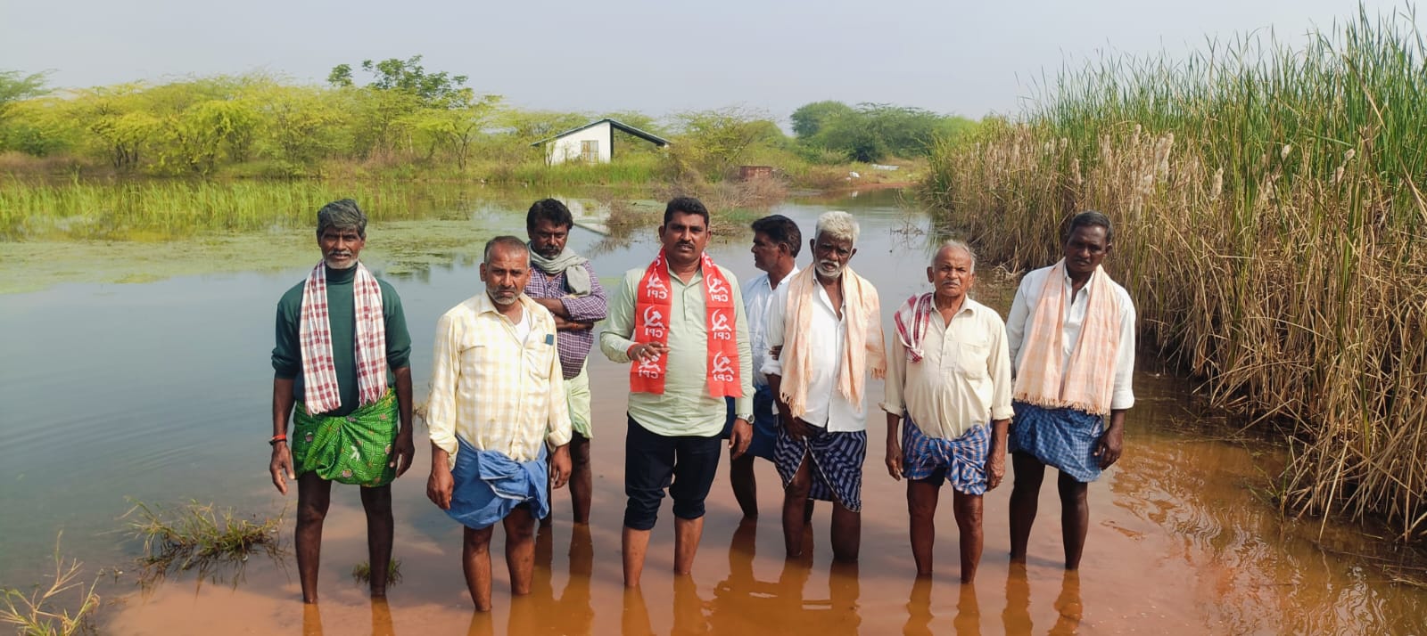 నేటి సాక్షి 04 జూపాడుబంగ్లా :- రాయలసీమ తలమానికంగా జరిగే శ్రీ రంగనాథ స్వామి జాతర జరిగే గ్రామమైన తర్త్తూరులో ఇంత వరకు దళిత బడుగు బలహీన వర్గాలకు చెందిన 250 కుటుంబాలకు స్మశాన వాటిక లేని పరిస్థితి ఉందని చెరువులో స్మశానం ఉండడం అధికారులకు తగునా అని ఈ సమస్య అధికారులకు కనిపించడం లేదా అని తక్షణమే స్మశానానికి స్థలం కేటాయించకపోతే ఆందోళన తప్పదని సిపిఐ జిల్లా కార్యవర్గ సభ్యులు ఎం.రమేష్ బాబు హెచ్చరించారు..ఆదివారం తర్తురు గ్రామ ప్రజలతో కలిసి చెరువును తలపిస్తున్న స్మశానాన్ని పరిశీలించడం జరిగింది.. ఈ సందర్భంగా వారు మాట్లాడుతూ స్వాతంత్రం వచ్చి 75 సంవత్సరాలు అవుతున్న ఇంతవరకు గ్రామాల్లో స్మశాన వాటికలు లేని పరిస్థితి ఉందన్నారు. ప్రచారాలకు మాత్రమే పరిమితమైన అధికారులు స్మశాన వాటికలకు స్థలాలు ఎందుకు కేటాయించడం లేదని,అక్రమంగా స్థలాలు ఆక్రమించుకున్న వారిపై చర్యలు తీసుకోకుండా గ్రామ కంఠం భూములు అన్యాక్రాంతమవుతున్న ప్రభుత్వ భూములు విచ్చలవిడిగా దోపిడీ జరుగుతున్న పట్టించుకోవడంలేదని ముఖ్యంగా తర్తురు,, పారుమంచాల గ్రామాల్లో స్మశాన వాటిక లేక గ్రామ ప్రజలు అల్లాడే పరిస్థితి నెలకొందన్నారు.. స్మశాన వాటికలకై సిపిఐ ఆధ్వర్యంలో అనేక ఆందోళనలు పిజిఆర్ఎస్లో దరఖాస్తు చేసిన దృష్టి కేంద్రీకరించడంలో అధికారులు విఫలం చెందుతున్నారన్నారు. గ్రామాల్లో పరిపాలించే నాయకులకు సంబంధించిన స్మశాన వాటిక స్థలాలు ఎలా ఉన్నాయి,దళిత బిసి ల స్మశాన వాటికలు ఎలా ఉన్నాయో పరిశీలన చేయాలన్నారు.. గ్రామాల్లో తారతమ్య బేధాలు లేకుండా అందరికీ స్మశానవాటికలు సమానంగా కేటాయించాలన్నారు.. రెవెన్యూ, అభివృద్ధి,సాంఘిక సంక్షేమ అధికారులు దృష్టి కేంద్రీకరించాలని లేనిపక్షంలో తమ కార్యాలయాలను ముట్టడిస్తామని వారు హెచ్చరించారు..త్వరలో ఈ సమస్యను పరిష్కరించాలని కోరారు. ఈ కార్యక్రమంలో సిపిఐ మండల నాయకులు భాషా సలీం,తర్తూరు గ్రామస్తులు డ్రైవర్ రంగస్వామి, మంగలి నాగేంద్ర,రవి,తెలుగు వెంకటేశ్వర్లు, గని, మధు, కురువ శేషన్న,తదితరులు పాల్గొన్నారు..