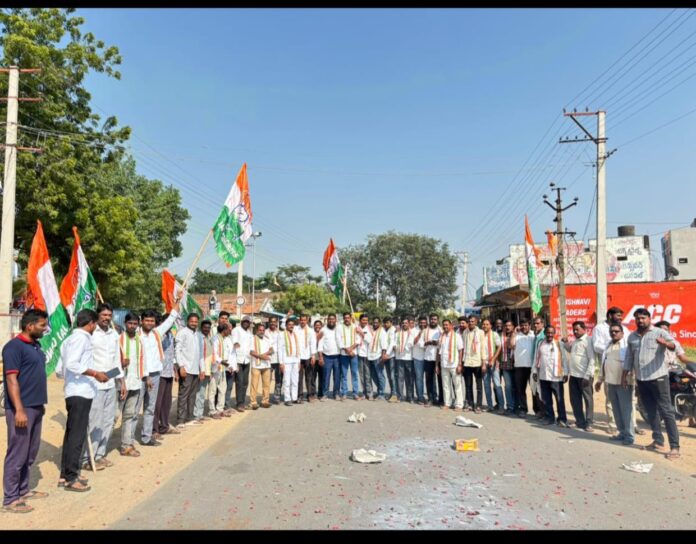 నేటి సాక్షి, జగిత్యాల ప్రతినిధి:* ( గుండ ప్రశాంత్ గౌడ్ )జగిత్యాల జిల్లా గొల్లపల్లి మండల కేంద్రంలో నేడు రాష్ట్ర సంక్షేమ శాఖ మంత్రివర్యులు శ్రీ అడ్లూరి లక్ష్మణ్ కుమార్ ఆదేశానుసారం మండల కాంగ్రెస్ పార్టీ ఆధ్వర్యంలో జూబ్లీహిల్స్ ఉప ఎన్నికలో కాంగ్రెస్ పార్టీ అభ్యర్థి నవీన్ యాదవ్ ఘన విజయం సాధించిన సందర్భంగా మండల కాంగ్రెస్ పార్టీ నాయకులు మండల కేంద్రంలో బాణాసంచా కాల్చి మిఠాయి పంచి సంబరాలు చేసుకున్నారు. ఇట్టి కార్యక్రమంలో మార్కెట్ కమిటీ చైర్మన్ భీమ సంతోష్ మాజీ సర్పంచ్ లు రేవెళ్ల సత్యనారాయణ గౌడ్ చిర్ర గంగాధర్ ఈర్నాల రాజేశ్వరరావు రెవెల్ల లింగయ్య మాజీ ఎంపీటీసీ సభ్యులు దాసరి తిరుపతి గౌడ్ మార్కెట్ కమిటీ డైరెక్టర్లు ఓరుగంటి తిరుపతి అత్తెన శివయ్య కట్ట లక్ష్మణ్ రావు కొక్కుల జలంధర్ కాంగ్రెస్ పార్టీ బిసి సెల్ మండల అధ్యక్షులు కాషా గంగాధర్ మండల యూత్ కాంగ్రెస్ అధ్యక్షుడు పురంశెట్టి గౌతమ్ రాజ్ ఉపాధ్యక్షులు ఓర్సు విజయ్ పట్టణ అధ్యక్షులు నేరెళ్ల మహేష్ మాజీ ఉపసర్పంచ్ కొండా వెంకటేష్ గౌడ్ నాయకులు ఆకుల సుమన్ గౌడ్ గడప రవి ఎల్లాల లింగారెడ్డి సట్ట ఎల్లయ్యా లక్ష్మణ్ బొల్లిశెట్టి నరేష్ గురిజాల బుచ్చిరెడ్డి తడగొండ విజయ్ దేవరకొండ శ్యామ్ తాడూరి సత్యనారాయణ కసారపు ప్రవీణ్ గౌడ్ చెవులమద్ది గంగాధర్ మజ్జు రవి గంగన్న ఓర్పుల రవి విక్రమ్ యూత్ కాంగ్రెస్ నాయకులు నల్ల విక్రమ్ రెడ్డి ప్రశాంత్ సుధీర్ ప్రవీణ్ నవీన్ మరియు తదితరులు పాల్గొన్నారు.