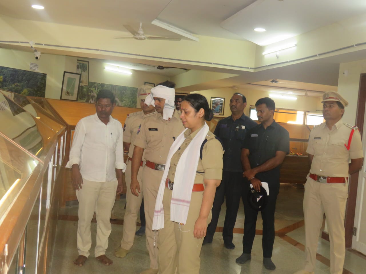 నేటి సాక్షి .కొమురంభీం ఆసిఫాబాద్ జిల్లాకు నూతన ఎస్పీ గా బాధ్యతలు స్వీకరించిన నితిక పంత్ ఐపీఎస్ గారు ఈ రోజు జోడేఘాట్ లోని ఆదివాసి నాయకుడు కొమరం భీమ్ విగ్రహాన్ని సందర్శించి నివాళులు అర్పించారు. ముందుగా ఎస్పీ , ఎఎస్పీ లకు ఆదివాసీ పెద్దలు పూల మొక్కలు అందించి, తలపాగా చుట్టి ఘన స్వాగతం పలికారు. ఆదివాసి నాయకులు కొమరం భీమ్ గారి విగ్రహాన్ని సందర్శించి పూలమాల వేసి, నివాళి అర్పించారు. ఆతర్వాత కొమురం భీమ్ మ్యూజియాన్ని సందర్శించి , గిరిజన ఆచార సంప్రదాయాలను అడిగి తెలుసుకున్నారు. అత్యంత మారుమూల గిరిజన ప్రజలకు కూడా పోలీసులు ఎల్లప్పుడూ అందుబాటులో ఉంటూ సహాయం అందిస్తామని అక్కడి పటేల్స్, ప్రజలతో తో అన్నారు. అనంతరం ఆదివాసీ పెద్దలు ఎస్పీ గారిని సన్మానించారు. ఈ కార్యక్రమం లో ఆసిఫాబాద్ ఏ.ఎస్.పి చిత్తరంజన్ ఐపిఎస్, వాంకిడి సీఐ సత్యనారాయణ, కేరమేరి ఎస్.ఐ మధుకర్, పోలీస్ సిబ్బంది పాల్గొన్నారు.