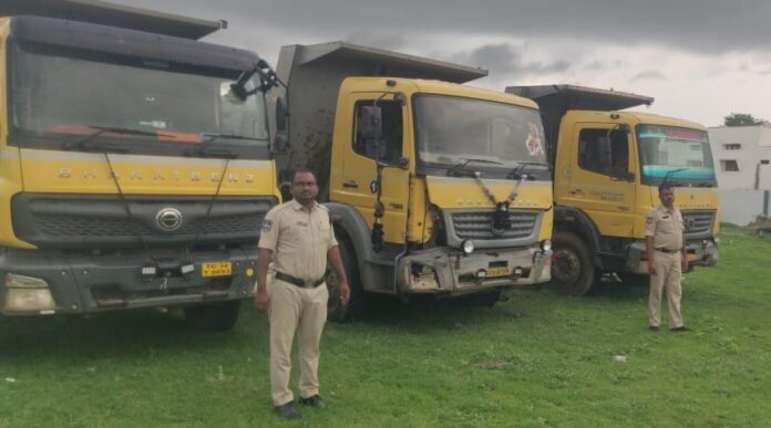 మరికల్ పోలీస్ స్టేషన్ పరిధిలో -02 టిప్పర్ లు…… ధన్వాడ పోలీస్ స్టేషన్ పరిధిలో 03 టిప్పర్ లు……. మాగనూరు పోలీస్ స్టేషన్ పరిధిలో 02 టిప్పర్ లు…. నేటిసాక్షి, నారాయణపేట, జూన్ 14, నారాయణపేట జిల్లాలోని మరికల్ పోలీస్ స్టేషన్ పరిధిలోని* అక్రమంగా ఇసుక తరలిస్తుంటే టాస్క్ ఫోర్స్/ మరికల్ పోలీసులు దాడులు నిర్వహించి 02 టిప్పర్ లను పట్టుకొని పోలీస్ స్టేషన్కు తరలించి 1) చాకలి శివకుమార్ s/o వెంకటప్ప డ్రైవర్ మరియు ఓనర్, జాజాపూర్ గ్రామం, నారాయణపేట.2) మన్నె రమేష్ s/o నారాయణ, డ్రైవర్/ ఓనరు జాజాపూర్ గ్రామం, నారాయణపేట.చెందిన వ్యక్తుల పై కేసు నమోదు చేసి దర్యాప్తు చేస్తున్నామని మరికల్ ఎస్సై రాము తెలిపారు.ధన్వాడ పోలీస్ స్టేషన్ పరిధిలో* మూడు టిప్పర్లలో అక్రమంగా ఇసుక తరలిస్తుంటే టాస్క్ ఫోర్స్, ధన్వాడ పోలీసులు పట్టుకొని పోలీస్ స్టేషన్ కు తరలించి 1) డ్రైవర్ చాకలి నరేష్ s/o వెంకటయ్య, తిప్రస్పల్లి. ఓనర్. అరుణ్ s/o వెంకట్ రాములు. జాజాపూర్, నారాయణపేట. 2) డ్రైవర్ తిమ్మప్ప s/o సోమప్ప, మాగనూరు. ఓనర్ మహేష్ గౌడ్ s/o రాజప్ప, నేరేడ్గం.3) డ్రైవర్ నాగరాజు s/o నాగప్ప, శక్తి నగర్, రైచూర్. ఓనర్. వేణుగోపాల్ రెడ్డి s/o శ్రీనివాస్ రెడ్డి, మాగనూరు. డ్రైవర్, ఓనర్లపై ధన్వాడ ఎస్సై రాజశేఖర్ గారు కేసు నమోదు చేసి దర్యాప్తు చేస్తున్నామని తెలిపారు.మాగనూరు పోలీస్ స్టేషన్ పరిధిలో* అక్రమంగా ఇసుక తరలిస్తున్న రెండు టిప్పర్లను టాస్క్ ఫోర్స్, మాగనూరు పోలీసులు పట్టుకొని పోలీస్ స్టేషన్ కు తరలించి 1) డ్రైవర్ రమేష్ మరియు ఓనర్ వినోద్ కుమార్ లపై కేసు నమోదు.2) డ్రైవర్ రాము s/o నరసింహులు వర్కూర్ గ్రామం మాగనూరు మండలం. ఓనర్… లింగప్ప సన్నాఫ్ పెద్ద లింగప్ప వర్కురు గ్రామం మాగనూరు మండలం. చెందిన వ్యక్తులపై కేసు నమోదు చేయడం జరిగిందని మాగనూరు ఎస్సై తెలిపారు.