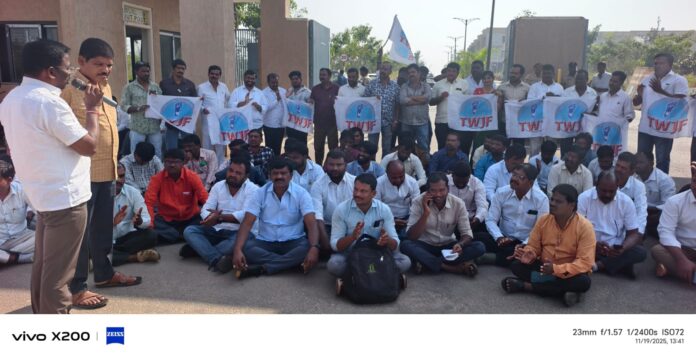 ( నేటి సాక్షి): జర్నలిస్టుల హక్కుల సాధన కోసం తెలంగాణ వర్కింగ్ జర్నలిస్ట్ ఫెడరేషన్ (టిడబ్ల్యూ జె ఎఫ్) యూనియన్ ఆధ్వర్యంలో బుధవారం రంగారెడ్డి కలెక్టరేట్ వద్ద పెద్ద ఎత్తున నిరసన కార్యక్రమాన్ని నిర్వహించారు. తమ సమస్యలను పరిష్కరించాలని, తక్షణమే న్యాయం చేయాలని కోరుతూ జిల్లాలోని పలు ప్రాంతాలకు చెందిన జర్నలిస్టులు ఈ కార్యక్రమంలో పాల్గొన్నారు. యూనియన్ నాయకులు మరియు జర్నలిస్టులు తమ ప్రధాన డిమాండ్లను కలెక్టర్ దృష్టికి తీసుకువెళ్లారు. వీటిలో సంక్షేమ పథకాల అమలు వంటి కీలక అంశాలు ఉన్నాయి. నిత్యం క్షేత్రస్థాయిలో ప్రజల సమస్యలను వెలుగులోకి తీసుకువస్తున్న జర్నలిస్టులకు తగిన భద్రత, గుర్తింపు కల్పించాలని వారు డిమాండ్ చేశారు. జర్నలిస్టుల వినతిని స్వీకరించిన జిల్లా కలెక్టర్, సమస్యలన్నింటినీ సావధానంగా విన్నారు. అనంతరం ఆయన మాట్లాడుతూ జర్నలిస్టుల సమస్యలు తన దృష్టికి వచ్చాయని, వారి న్యాయమైన డిమాండ్లను త్వరలోనే పరిష్కరిస్తామని హామీ ఇచ్చారు. “కొద్ది రోజుల్లోనే జర్నలిస్టులకు న్యాయం చేసేందుకు కృషి చేస్తాం. ప్రభుత్వ పరంగా అందాల్సిన అన్ని సౌకర్యాలు అందేలా చూస్తాం,” అని కలెక్టర్ స్పష్టం చేశారు. జర్నలిస్టుల సంక్షేమం కోసం కలెక్టర్ ఇచ్చిన హామీపై టిడబ్ల్యూజెఎఫ్ నాయకులు, సభ్యులు హర్షం వ్యక్తం చేశారు. ఇచ్చిన హామీని త్వరగా నెరవేర్చాలని వారు కోరారు.