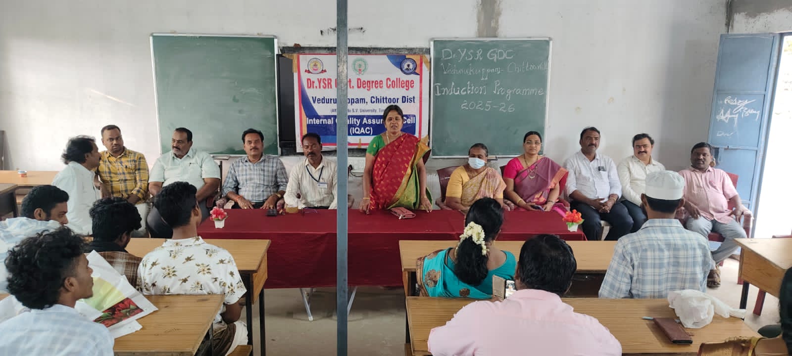 నేటి సాక్షి తిరుపతి (బాదూరు బాల)*వెదురు కుప్పం*డాక్టర్ వై.ఎస్.ఆర్ ప్రభుత్వ డిగ్రీ కళాశాల, వెదురుకుప్పంలో నూతనంగా ప్రవేశించిన మొదటి సంవత్సరం విద్యార్థులకు స్వాగతం పలికే ఉద్దేశంతో *ఫ్రెషర్స్ డే*’ మరియు *ఇండక్షన్ కార్యక్రమం* నేడు అత్యంత వైభవంగా జరిగింది. విద్యార్థులకు కళాశాల నిబంధనలు, విద్యా వాతావరణాన్ని పరిచయం చేయడంలో ఈ కార్యక్రమం విజయవంతమైంది.ఈ కార్యక్రమానికి *కళాశాల ప్రిన్సిపాల్ డాక్టర్ బి.అన్నపూర్ణ శారద* గారు ఆతిథ్యం ఇచ్చారు. కళాశాల నాణ్యతా హామీ విభాగం పర్యవేక్షణలో ఈ కార్యక్రమాన్ని నిర్వహించారు. నూతన విద్యార్థులకు కళాశాల అందించే సదుపాయాలు, విద్యా ప్రమాణాలు, జాతీయ విద్యా విధానం గురించి సమగ్ర అవగాహన కల్పించడమే ఇండక్షన్ ప్రోగ్రామ్ యొక్క ముఖ్య ఉద్దేశమని ప్రిన్సిపాల్ డాక్టర్ బి. అన్నపూర్ణ శారద తెలిపారు.ఈ సందర్భంగా ఆమె మాట్లాడుతూ, “డిగ్రీ విద్య అనేది విద్యార్థుల భవిష్యత్తుకు పునాది వంటిది. లక్ష్యాలను ఏర్పరచుకొని, క్రమశిక్షణతో ముందుకు సాగితే విజయం సాధించడం ఖాయం. మా కళాశాల తరపున విద్యార్థులకు అన్ని విధాలా మద్దతు అందిస్తాము,” అని పేర్కొన్నారు.విద్యార్థుల చురుకైన భాగస్వామ్యంఇండక్షన్ కార్యక్రమం అనంతరం జరిగిన ఫ్రెషర్స్ డే వేడుకల్లో నూతన విద్యార్థులు ఉత్సాహంగా పాల్గొన్నారు. కళాశాల సీనియర్ విద్యార్థులు జూనియర్లకు స్వాగతం పలికి, పలు సాంస్కృతిక కార్యక్రమాలు, ఆటల పోటీలు నిర్వహించారు. నూతన విద్యార్థులు కూడా పాటలు, నృత్యాలతో తమ ప్రతిభను ప్రదర్శించారు.కళాశాల యొక్క (ఐక్యూఎసి)కోఆర్డినేటర్ మరియు ఇతర అధ్యాపక సిబ్బంది విద్యార్థుల ఉత్సాహాన్ని అభినందించారు. ఈ కార్యక్రమం ద్వారా సీనియర్, జూనియర్ విద్యార్థుల మధ్య బంధం మరింత బలపడుతుందని, అకడమిక్ మరియు సాంస్కృతిక కార్యక్రమాలలో వారు చురుకుగా పాల్గొనేందుకు ప్రోత్సాహం లభిస్తుందని వారు ఆశాభావం వ్యక్తం చేశారు. నూతన విద్యార్థులు కళాశాల జీవితాన్ని విజయవంతంగా ప్రారంభించడానికి ఈ కార్యక్రమం చక్కటి వేదికగా నిలిచింది. ఈ కార్యక్రమంలో విద్యార్థినీ విద్యార్థులు మరియు అధ్యాపక అధ్యాపకేత్ర బృందం పాల్గొని కార్యక్రమాన్ని జయప్రదం చేశారు
