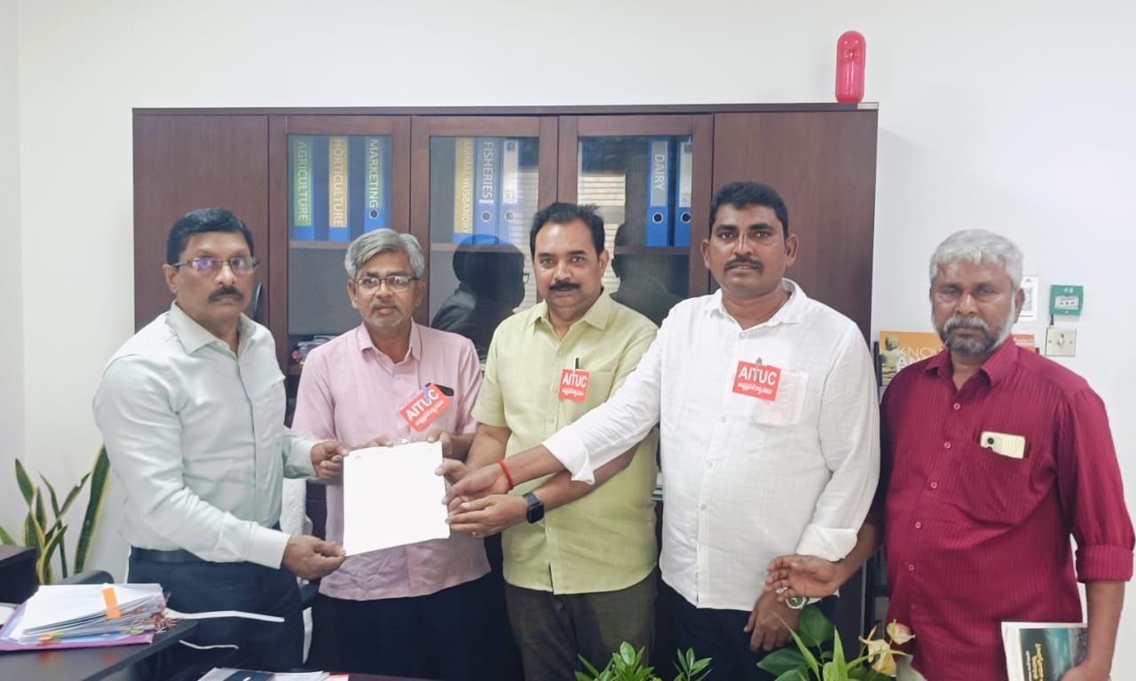 నేటి సాక్షి 29 విజయవాడ :—- తంగడంచ ఫారం రాష్ట్ర విత్తన ఉత్పత్తి క్షేత్రంలోని 1600 ఎకరాల ప్రభుత్వ భూములను అభివృద్ధి చేసి మెగాసిడ్ పార్కు ,జైన్ పరిశ్రమ ను అభివృద్ధి చేసి స్థానిక యువత కు ఉపాధి కల్పించాలని. కేంద్రియ వ్యవసాయ విశ్వవిద్యాలయం ఏర్పాటు చేయాలని కోరుతూ సోమవారం రాష్ట్ర సచివాలయంలో వ్యవసాయ శాఖ ప్రభుత్వ ప్రధాన కార్యదర్శి రాజశేఖర్ ఐఎస్ గారికి సిపిఐ జిల్లా కార్యవర్గ సభ్యులు ఎం. రమేష్ బాబు వినతిపత్రం అందించారు. ఈ సందర్భంగా రమేష్ బాబు మాట్లాడుతూ ఉమ్మడి ఆంధ్రప్రదేశ్ లోనే మేలు రకమైన విత్తన వంగడాలను (నేసనల్ సీడ్ ఫారం) ఒకప్పుడు దేశానికీ అందించిన తంగేడంచ ఫారం 1600 ఎకరాల ప్రభుత్వ భూములు నేడు అభివృద్ధికి నోచుకోక అటవీను తలపిస్తున్నాయరు. 2017లో ముఖ్యమంత్రి గా ఉన్న శ్రీ చంద్రబాబు నాయుడు గారు మెగాసిడ్ పార్కుమరియు జైన్ పరిశ్రమను ప్రారంభించారని, అయితే ఇంతవరకు అభివృద్ధికి నోచుకోలేదన్నారు. ఈ భూములు అభివృద్ధి చెంధితే నందికొట్కూరు నియోజకవర్గం లో నిరుద్యోగ సమస్య పూర్తిగా రూపుమాపుతుందని,ఈ భూముల అభివృద్ధి కోసం నియోజకవర్గ ప్రజలు వేయికళ్లతో ఎదురుచూస్తున్నారన్నారు.ఎవరు పట్టించుకోకపోవడం వల్లఅన్యాక్రాంతమవుతున్నాయి.ప్రస్తుతం జైన్ పరిశ్రమలో పట్టుమని పదిమంది కూడా ఉపాధి పొందే పరిస్థితి లేదన్నారు.. కావున ఈ భూముల అభివృద్ధిపై దృష్టి కేంద్రీకరించి అభివృద్ధి చేసి స్థానిక నిరుద్యోగ యువతకు ప్రజలకు ఉపాధి కల్పించే ఆదుకోవాలని, కేంద్ర ప్రభుత్వం మంజూరు చేసే కేంద్రీయ వ్యవసాయ విశ్వవిద్యాలయాన్ని ఈ భూముల్లో ఏర్పాటు చేస్తే అన్ని సాగునీరు, రవాణా సౌకర్యాలు అందుబాటులో ఉన్నాయన్నారు.కావున భూముల అభివృద్ధికి దృష్టి కేంద్రీకరించాలని వారు కోరారు..