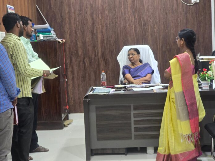 నేటి సాక్షి – మెట్ పల్లి*( రాధారపు నర్సయ్య )జగిత్యాల జిల్లా అదనపు కలెక్టర్ బి.ఎస్. లత గురువారం మెట్ పల్లి మండల కేంద్రంలోని తహసిల్దార్ కార్యాలయాన్ని ఆకస్మికంగా తనిఖీ చేశారు. కార్యాలయంలో జరుగుతున్న పనుల ప్రగతిని, రికార్డు నిర్వహణను, ప్రజా ఫిర్యాదుల పరిష్కార పరిస్థితిని ఆమె సమీక్షించారు.*’భూ-భారతి’ సమస్యలపై సమీక్ష*ఇటీవల ప్రారంభించిన ‘భూ-భారతి’ రెవెన్యూ సదస్సులో అందిన ప్రతి దరఖాస్తును క్షుణ్ణంగా పరిశీలించి, పెండింగ్‌లో ఉన్న భూ సమస్యలను వీలైనంత త్వరగా పరిష్కరించాలని అధికారులకు ఆదేశించారు. భూ వివాదాలపై తక్షణ చర్యలు తీసుకొని, ప్రజలకు న్యాయం జరిగేలా చూడాలని సూచించారు.*మీసేవ సర్టిఫికెట్ల జారీ వేగవంతం చేయాలి*మీసేవ ద్వారా జారీ చేసే అన్ని రకాల సర్టిఫికెట్లు పెండింగ్‌లో ఉండకూడదని, ప్రజలకు సమయానికి అందేలా చర్యలు తీసుకోవాలని ఆమె ఆదేశించారు. ‘ప్రజలు కార్యాలయాల చుట్టూ తిరగకుండా సేవలు సకాలంలో అందించటం ప్రభుత్వ లక్ష్యం’అని అదనపు కలెక్టర్ లత స్పష్టం చేశారు.ఈ తనిఖీలో మెట్ పల్లి రెవెన్యూ డివిజనల్ అధికారి శ్రీనివాస్, తహసిల్దార్, రెవెన్యూ సిబ్బంది తదితరులు పాల్గొన్నారు.—–