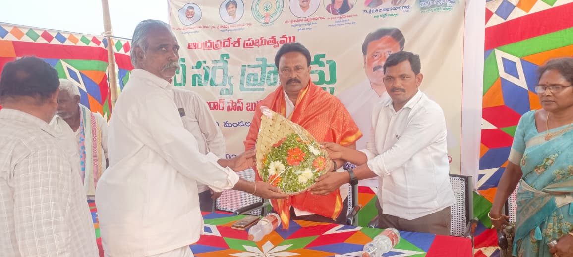 నేటి సాక్షి 03 పాములపాడు:- పాములపాడు మండలంలోని, తుమ్మలూరు గ్రామంలో, గ్రామ 2వ సచివాలయము నందు నిర్వహించిన రాజముద్రతో నూతన పట్టాదారు పాసు పుస్తకాల పంపిణీ కార్యక్రమంలో నందికొట్కూరు శాసనసభ్యులు గిత్త.జయసూర్య పాల్గొని, ప్రభుత్వ అధికారులతో, నాయకులతో కలిసి రైతులకు పట్టాదారు పాస్ పుస్తకాలను పంపిణీ చేయడం జరిగింది.ఈ సందర్భంగా ఎమ్మెల్యే గిత్త.జయసూర్య మాట్లాడుతూ వైసీపీ హయాంలో జగన్ బొమ్మతో భూమి హక్కు పత్రాలు, సర్వే రాళ్ళు ఉండటం రీ సర్వే కూడా తప్పుల తడకగా ఉండటంతో రైతులు తీవ్ర నిరసన వ్యక్తం చేసారు. తాము అధికారంలోకి వస్తే రీసర్వే తప్పులను సరిదిద్ది, ప్రభుత్వ రాజముద్రతో పట్టాదారు పాసుపుస్తకాలను ఇస్తామని చంద్రబాబు హామీ ఇచ్చారనీ, ఆ హామీని ఇప్పుడు నెరవేర్చుతున్నాం అన్నారు.రైతుల సంక్షేమమే లక్ష్యంగా ప్రభుత్వం అమలు చేస్తున్న కార్యక్రమాలు గ్రామస్థాయి లబ్ధిదారులకు చేరాలన్నదే మా నిరంతర కృషి అన్నారు.ఈ కార్యక్రమంలో డిప్యూటీ తహసిల్దార్- పఠాన్ బాబు, ఎస్సై- పి.తిరుపాలు, రీ సర్వే డిటి-వి.సుప్రియా, ఆర్ఐ- డి.ఖాజాబి, గ్రామ సర్పంచ్-వి.వరప్రసాద్, ఈఓఆర్డి- ఎం.సులోచన, వీఆర్వో హుస్సేన్ సాహెబ్, తెలుగుదేశం పార్టీ నాయకులు వెంకటేశ్వర రెడ్డి, సత్యనారాయణ రెడ్డి, చెల్లె.హరినాథ రెడ్డి, రామకృష్ణ, ఏసేపు, ఇబ్రహీం, అలిసాహెబ్, వెంకటస్వామి, ఎమ్మెల్యే గవర్నమెంట్ పిఏ- రవీంద్ర, మాంద్ర శివానందరెడ్డి పిఎ- మద్దిలేటి, మండల నాయకులు, సంబంధిత అధికారులు, తదితరులు పాల్గొన్నారు.