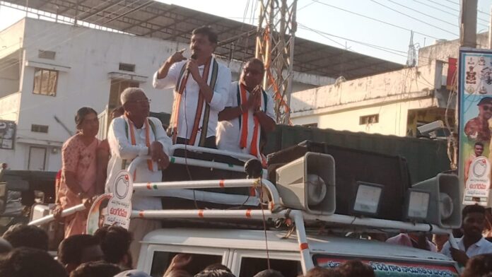 నేటి సాక్షి, నారాయణపేట, డిసెంబర్ 12,తెలంగాణ రాష్ట్రం ఇచ్చింది కాంగ్రెస్ ప్రభుత్వం సోనియా గాంధీ అని నారాయణపేట జిల్లా కాంగ్రెస్ పార్టీ మాజీ అధ్యక్షులు కుంభం శివకుమార్ రెడ్డి అన్నారు. శుక్రవారం కాంగ్రెస్ పార్టీ ఆధ్వర్యంలో మరికల్ గ్రామ పంచాయతీ ఎన్నికల్లో సర్పంచ్ గా గూప చెన్నయ్యను భారీ మెజార్టీతో ఉంగరం గుర్తుకు ఓటు వేసి గెలిపించాలంటూ మరికల్ గ్రామంలోని ప్రతి వార్డులో భారీ ర్యాలీ కార్యక్రమాన్ని కాంగ్రెస్ పార్టీ కార్యకర్తలు నిర్వహించారు అనంతరం మరికల్ మండల కేంద్రంలోని ఇందిరాగాంధీ చౌరస్తాలో కార్యకర్తలను ఉద్దేశించి ఆయన మాట్లాడుతూ మరికల్ గ్రామ సర్పంచ్ అభ్యర్థి భూపతి చెన్నయ్యను గెలిపిస్తే మరికల్ గ్రామానికి 200 ఇందిరమ్మ ఇండ్లను మంజూరుకు కృషి చేస్తానని సభలో ఆయన తెలిపారు. మరికల్ గ్రామంలోని 449 లో ఉన్న భూములకు త్వరలోనే రైతులకు భూపాస్ పుస్తకాలు ఇప్పిస్తామన్నారు. మరికల్ గ్రామంలోని ఆర్టీసీ బస్టాండ్ ముందు ఉన్న ఒకటో సర్వే నెంబర్లు మార్కెట్ యార్డ్ ఏర్పాటుకు కృషి చేస్తానన్నారు. కాంగ్రెస్ ప్రభుత్వ పాలనలో నిరుపేదలకు రేషన్ కార్డులు ఉచిత కరెంటు సౌకర్యం ప్రజలకు సన్నబియ్యం పథకం ఉచిత బస్సు సౌకర్యం ఇందిరమ్మ చీరలు ఇందిరమ్మ గృహాలు రైతు రుణమాఫీ చేసిన ఘనత కాంగ్రెస్ ప్రభుత్వమని ఆయన గుర్తు చేశారు. నిరుపేదలకు సంక్షేమ పథకాలు అందాలంటే కాంగ్రెస్ పార్టీ ఆధ్వర్యంలో గ్రామ సర్పంచ్ గా నిలబడిన సర్పంచ్ అభ్యర్థి గోపన్నయ్యకు భారీ మెజార్టీ ఓట్లతో ఉంగరం గుర్తుకు వేసి గెలిపించాలని బహిరంగ సభలో ఆయన కోరారు. ఈ కార్యక్రమంలో కాంగ్రెస్ పార్టీ జిల్లా నాయకులు ఎస్ సూర్య మోహన్ రెడ్డి, జిల్లా కాంగ్రెస్ పార్టీ నాయకులు గొల్ల కృష్ణయ్య,మరికల్ మండల కాంగ్రెస్ పార్టీ అధ్యక్షులు వెలగొంది వీరన్న, టైసన్ రాఘవేంద్ర, ఎన్ ఎస్ యు ఐ నాయకులు అన్వర్, రామకృష్ణ, రామకృష్ణారెడ్డి, గాజుల ఖతాల్ హుస్సేన్, ఎల్ రాములు, ఆనంద్ కుమార్ ,సురేందర్ గౌడ్, మరికల్ పట్టణ అధ్యక్షుడు హరీష్ కుమార్, గోవర్ధన్, బొంత మొగులయ్య, తదితరులు పాల్గొన్నారు.