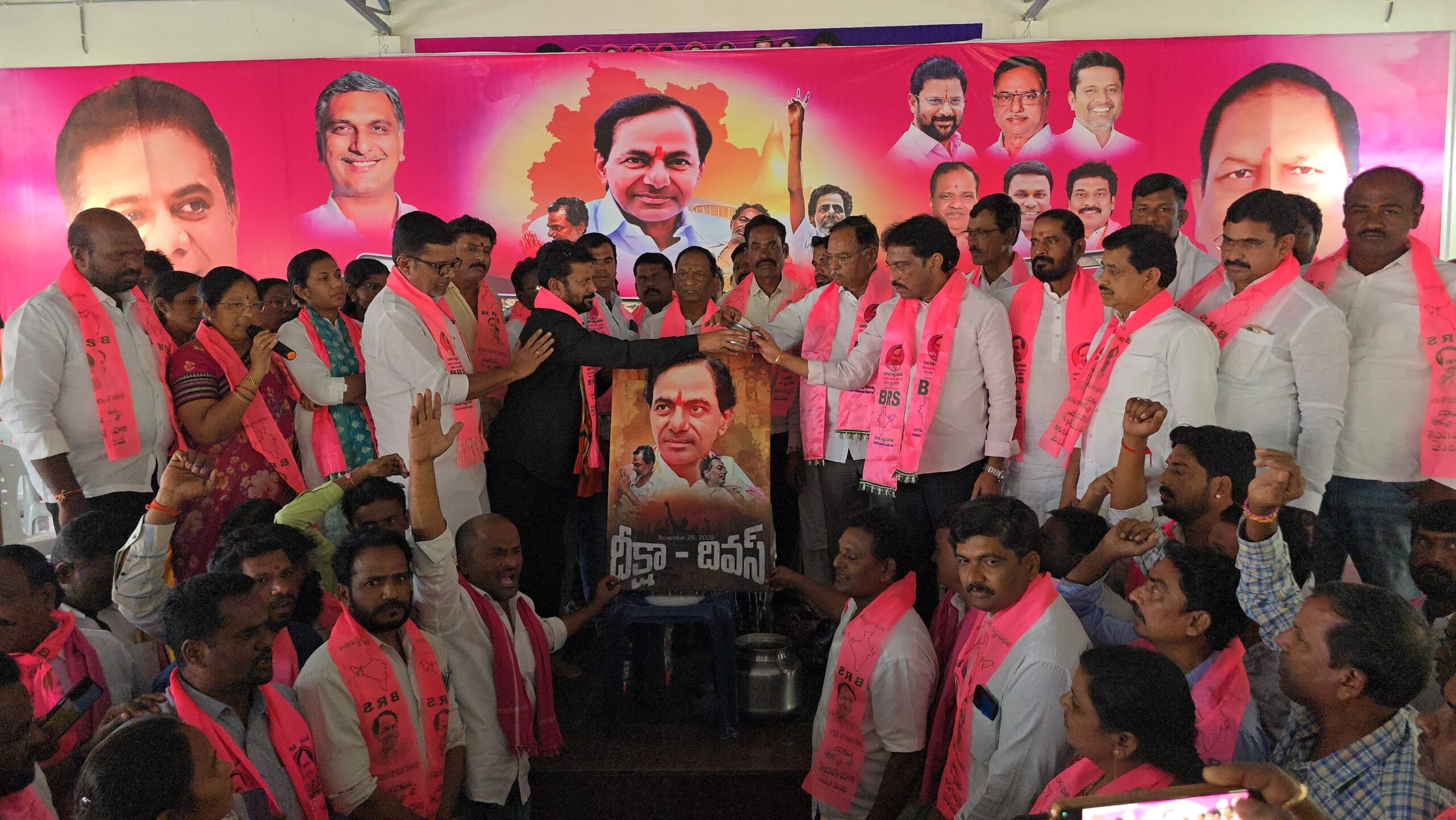 నేటి సాక్షి గోదావరిఖని (రమేష్)= బీఆర్ఎస్ అధినేత కేసీఆర్ చేపట్టిన దీక్ష ఒక చారిత్రక ఘట్టం= రామగుండం మాజీ ఎమ్మెల్యే కోరుకంటి చందర్. తెలంగాణ గమ్యాన్ని మార్చిన చారిత్రక రోజు దీక్షా దివస్ .. బీఆర్ఎస్ అధినేత కేసీఆర్ చేపట్టిన దీక్ష ఒక చారిత్రక ఘట్టమని రామగుండం మాజీ శాసనసభ్యులు పెద్దపల్లి జిల్లా బీ.ఆర్.ఎస్ పార్టీ అధ్యక్షులు కోరుకంటి చందర్ అన్నారు. శనివారం దీక్షా దివస్ వేడుకలు పెద్దపల్లి జిల్లా బీ.ఆర్.ఎస్ పార్టీ కార్యాలయం లో నిర్వహించారు. కార్యక్రమానికి మాజీ మంత్రి కోప్పుల ఈశ్వర్ జిల్లా జడ్పీ మాజీ చైర్మన్ పుట్ట మధుకర్ మాజీ ఎమ్మెల్యే దాసరి మనోహర్ రెడ్డి మాజీ జిల్లా గ్రంధాలయ చైర్మన్ రఘువీర్ సింగ్ నాయకురాలు దాసరి ఉషా హజరైయ్యారు. సందర్భంగా రామగుండం మాజీ ఎమ్మెల్యే కోరుకంటి చందర్ మాట్లాడుతూ… కేసీఆర్ సచ్చుడో తెలంగాణ వచ్చుడో’ కేసీఆర్ శవయాత్రనా తెలంగాణ జైత్రయాత్రనా అంటూ ఆనాడు కేసీఆర్ ఇచ్చిన నినాదం సమరనాదంగా పనిచేసి మొత్తం తెలంగాణ జాతిని ఏకం చేసిందని, 11 రోజుల పోరాటంతో తెలంగాణలో పోరాటం పోటెత్తిందన్నారు. కేసీఆర్ దీక్ష వల్లనే తెలంగాణలోని సబ్బండ వర్గాలు కలిసి వచ్చి తెలంగాణ కావాలని కొట్లాడరని కేటీఆర్ గుర్తు చేశారు. కేసీఆర్ దీక్షకు దిగివచ్చి డిసెంబర్ 9 తేదీన తెలంగాణ ఏర్పాటుకు సంబంధించిన ప్రకటన వచ్చిందన్నారు. స్వతంత్ర సంగ్రామ పోరాటంలో సిపాయిల తిరుగుబాటు జలియన్వాలా బాగ్ ఉప్పు సత్యాగ్రహం సహాయ నిరాకరణ క్విట్ ఇండియా వంటి అనేక ముఖ్య ఘట్టాలు ఉన్నాయని అదే తీరుగా తెలంగాణ ఆత్మగౌరవ పోరాటంలోనూ అపూర్వమైన ఘట్టాలు ఉన్నాయని కేటీఆర్ తెలిపారు. చరిత్రను మలుపు తిప్పిన సమున్నత సందర్భాలలో కేసీఆర్ ఆమరణ దీక్ష ఒకటి అని నవంబర్ 29, 2009వ సంవత్సరం ఉద్యమ చరిత్రలో ఒక ఉజ్వల దృశ్యంగా నిలిచిపోతుందన్నారు.తెలంగాణ కోసం కలకంటూ తెలంగాణ జాతి కోసం తన పోరాటాన్ని ఇచ్చి సాధించిన మహా నాయకుడు కేసీఆర్ అని కేటీఆర్ తెలిపారు. 1952 నుంచి కేసీఆర్ తెలంగాణ కోసం గులాబీ జెండా ఎత్తే వరకు అన్ని సందర్భాల్లోనూ కాంగ్రెస్ పార్టీతో పాటు సమైక్యవాద శక్తులు ఎక్కడికక్కడ తెలంగాణ ఉద్యమానికి చేసిన ద్రోహాలను, మోసాలను గుర్తుంచుకొని మలిదశ పోరాటంలో ఆ సవాళ్లు అన్నింటిని దాటుకుంటూ ముందుకు సాగిన మహా నాయకుడు కేసీఆర్ అని పేర్కొన్నారు.ఉద్యమంలో పట్టువిడుపులతో ముందుకు సాగిన కేసీఆర్ చాణక్యం వల్లనే తెలంగాణ ఏర్పాటు సాధ్యమైందని, ఇందులో భాగంగా ఎన్నో పదవి త్యాగాలు, ఎన్నో రాజీనామాలు చేసిన పార్టీ భారత రాష్ట్ర సమితి అన్నారు. తమ పార్టీ ప్రజా ప్రతినిధులు పదవులకు రాజీనామా చేస్తుంటే కాంగ్రెస్ పార్టీ నేతలు పదవుల కోసం బానిస లెక్క పెదవులు మూసుకుని తెలంగాణకు విద్రోహం చేశారని తెలిపారు.
