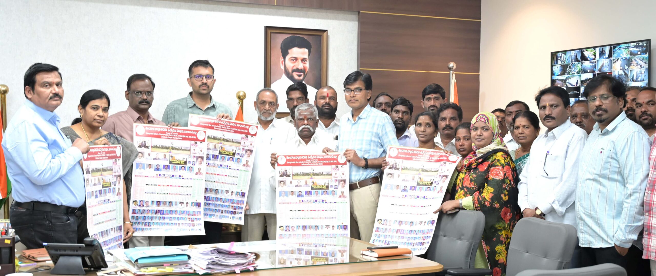 నేటి సాక్షి వికారాబాద్ :వికారాబాద్ జిల్లా కలెక్టరేట్ కార్యాలయంలో సోమవారం జిల్లా కలెక్టర్ ప్రతీక్ జైన్, అదనపు కలెక్టర్లు, ఇంచార్జి అదనపు కలెక్టర్ రాజేశ్వరి (రెవిన్యూ), సుధీర్ (లోకల్ బాడీ), జిల్లా రెవెన్యూ అధికారి మంగి లాల్, డి.ఆర్.డి.ఏ. శ్రీనివాస్, కలెక్టరేట్ ఏ o. పర్వీన్ ఖాతున్, కలెక్టరేట్ రెవిన్యూ శాఖ సిబ్బంది.తెలంగాణ నాలుగో తరగతి ఉద్యోగులు తో కలిసి జిల్లా కలెక్టర్ ప్రతీక్ జైన్ గారిచే క్యాలెండర్ ని ఆవిష్కరించడం జరిగింది.ఈ కార్యక్రమంలో అధికారులు, కలెక్టరేట్ సిబ్బంది, TNGOs ప్రెసిడెంట్ సెక్రటరీ, వికారాబాద్ జిల్లా తెలంగాణ నాలుగో తరగతి ఉద్యోగుల సంఘం జిల్లా అధ్యక్షులు, కార్యదర్శులు, ఉపాధ్యక్షులు సంయుక్త కార్యదర్శులు, సహాయ అధ్యక్షులు, కార్య నిర్వాహక కార్యదర్శులు, ప్రచార కార్యదర్శులు, కార్యవర్గ సభ్యులు, పాల్గొన్నారు.