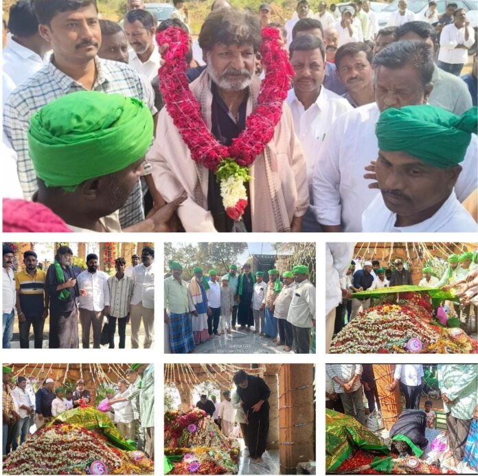 నేటి సాక్షి, అన్నమయ్య, శర్మ ~అన్నమయ్య జిల్లా :-: స్థానిక నియోజకవర్గ పరిధిలోని మొలకలచెరువు మండల కేంద్రమైన పెద్ద పాళ్యం గ్రామంలో గల సులేమాన్ షావలి దర్గా వద్ద జరుగుతున్న ఉర్సే షరీఫ్ కార్యక్రమంలో భాగంగా దర్గా వద్ద చాధర్ సమర్పించారు. అంతకు ముందు ముస్లిం మైనార్టీలకు ఆరాధ్యమైన దర్గా లో ప్రత్యేక పూజలు నిర్వహించి చాదర్ సమర్పించేందుకు మత గురువులు, ముతవల్లీలు, దర్గా కమిటీ సభ్యులు ఆహ్వానం మేరకు తంబళ్లపల్లి శాసనసభ్యులు పెద్దిరెడ్డి ద్వారకానాథ్ రెడ్డి అనుచరులతో కలిసి శనివారం గ్రామానికి చేరుకున్నారు. దర్గా వద్దకు విచ్చేసిన ద్వారకానాథ్ రెడ్డిని మండల వైసీపీ శ్రేణులు, గ్రామ పెద్దలు స్వాగతం పలికారు. ఛాదర్ను పెద్దిరెడ్డి ద్వారకానాథ్ రెడ్డి మోసుకుంటూ దర్గాలోకి ప్రవేశించారు. స్వామికి చాదర్ ను ముజావర్లతో కలసి ప్రత్యేక ప్రార్థనలు చేశారు. ముజావర్లు దర్గా ప్రాశస్య్తం, విశిష్టతను తెలిపారు. దర్గాలో మత గురువులతో ప్రత్యేక పూజలు నిర్వహించారు. మత గురువుల ఆశీస్సులు స్వీకరించారు. దర్గా ఉర్సు ఉత్సవాలు మతసామరస్యానికి ప్రతీకగా నిలుస్తున్నాయని ద్వారకానాథ్ రెడ్డి పేర్కొన్నారు. పెద్దిరెడ్డి ద్వారకానాథ్ రెడ్డి మతసామరస్యానికి ప్రతికగా దర్గా ఉత్సవాల నిర్వహణకు 20 వేలు అందించి తనలోని భక్తిని చాటారు. ఈ కార్యక్రమంలో రాజంపేట పార్లమెంటరీ ప్రధాన కార్యదర్శి ఆముదాల మధుసూదన్ రెడ్డి, ములకలచెరువు మండలాధ్యక్షుడు కోటిరెడ్డి మాధవరెడ్డి, జడ్పీటీసీ మోహన్ రెడ్డి, ఎంపీపీ సాయి లీల, రాష్ట్ర రెడ్డి కమ్యూనిటీ వర్కింగ్ ప్రెసిడెంట్ జయసింహా రెడ్డి, టంగుటూరి విశ్వనాథ్, వడిగల ప్రతాప్ రెడ్డి, సర్పంచులు విజయ రవి శేఖర్ రెడ్డి, సునీత సుదర్శన్ రెడ్డి, కోనంగి మంజుల రామనాథం, బూత్ కమిటీ అధ్యక్షుడు బోనాల చాంద్ భాష, మల్లికార్జున్ రెడ్డి, జేసీబీ మంజునాథ్ నాయుడు, ఫక్రుద్దీన్, కోనంగి శ్రీనివాసులు, నాయి బ్రాహ్మణుల అధ్యక్షుడు చింతకుంట్ల నాగేంద్ర, యాసీన్, లవ కుమార్ లు హాజరయ్యారు.~~~~~~~~~~~~~~~~~~