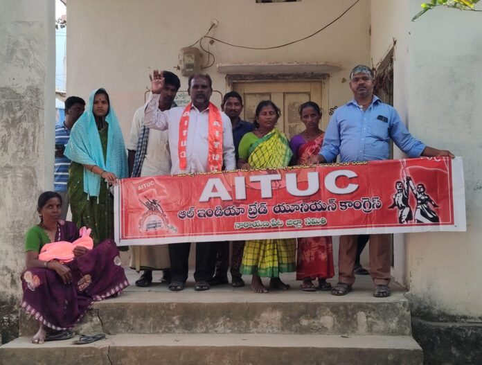 నేటి సాక్షి,నారాయణపేట, నవంబర్ 28,………..కేంద్ర ప్రభుత్వం 29 కార్మిక చట్టాలను రద్దు చేసి నాలుగు లేబర్ కోడ్ లు, సిగ్గుచేటు అని .ఏఐటీయూసీ జిల్లా ఉపాధ్యక్షులు పి వెంకటేష్ మాట్లాడుతూ . జిల్లాలో వివిధ మండలాల వివిధ గ్రామాలకు చెందిన కార్మికులు కార్యాలయం చుట్టూ రోజువారిగా వందల సంఖ్యలో తిరిగి ఆకలికి కేకలకు అలమటించిపోతున్న పట్టించుకోలేక ఇబ్బందులు పడుతున్నారు. జిల్లా అధికారి అందుబాటులో లేక దరఖాస్తు తీసుకున్న కార్మికులు.తక్షణమే పై అధికారులు పర్యవేక్షణ లేక.జిల్లాలో ఉన్నటువంటి అధికారులు ఏ ఎల్ ఓ కార్యాలయంలో. అందుబాటులో లేడు ఆయన డిమాండ్ చేశారు కార్యాలయం ముందు. భవ న నిర్మాణ కార్మిక సంఘం సారథ్యంలో పెద్ద ఎత్తున ధర్నా కార్యక్రమం .సహాయ కార్మిక అధికారి. అందుబాటులో లేక కార్మికులు ఇబ్బంది. పడుతున్నారు. కార్యాలయం ముందు ధర్నా నారాయణపేట జిల్లా ఏ ఎల్ ఓ అధికారి అందుబాటులో . దరఖాస్తుదారులు. లేబర్ కార్డు. రెండు మూడు నెలలు గడిచిన .దరఖాస్తు చేసుకున్న కార్మికుల లేబర్ కార్డు అందడం లేదు. మ్యారేజ్ గిఫ్ట్ దరఖాస్తు చేసుకున్న వారు.మరణించిన కుటుంబాలకు ఆర్థిక సాయం అందడం. కేంద్రంలో. భవన నిర్మాణ కార్మిక సంఘం . ఎన్నికల ముందు ఎన్నో హామీలు కేంద్ర రాష్ట్ర ప్రభుత్వాలు కార్మిక వ్యతిరేక విధానాలను అనుసరించడం సరైనది కాదని. ప్రభుత్వాలు తక్షణం. కార్మికుల పట్ల నిరంకుశంగా వ్యవహరిస్తున్నాయి. నాలుగు చట్టాలను తెచ్చి. కార్పొరేట్ యజమానులకు వత్తాసు పలుకుతున్నాయి ఇకనైనా .నాలుగు లేబర్ కోడ్ .లు చట్టాలు తీసుకువచ్చింది .దీని ఫలితంగా కార్మిక వర్గం, .కూలీలు సర్వహక్కులు కోల్పోయి 12 గంటల పని విధానం, యాజమాన్యాల దయాదాక్షినులతో జీతాల చెల్లింపులు లాంటి. వినాశనకర విధానాలకు వ్యతిరేకంగా జిల్లావ్యాప్తంగా అన్ని కార్మిక సంఘాలు, వ్యవసాయ కార్మిక సంఘాలు, రైతు సంఘాలు ఐక్యంగా కలిసి నిరసన కార్యక్రమాల పిలుపు భాగంగా మన నారాయణపేట జిల్లా ఏ ఎల్ ఓ అధికారి అందుబాటులో లేక . కార్యాలయం ముందు ధర్నా. కార్మిక ఆందోళన కార్యక్రమం . ఏఐటియుసి, భవన నిర్మాణ కార్మిక సంఘం . ఏఐటీయూసీ జిల్లా ఉపాధ్యక్షులు. పి. వెంకటేష్ కార్మికులు అధిక సంఖ్యలో హాజరై కేంద్ర ప్రభుత్వ కార్మిక వ్యతిరేక విధానాలను తిప్పి కొట్టాలని ఈ కార్యక్రమంలో మొగులయ్య జిల్లా నాయకులు.భావన నిర్మాణ కార్మిక సంఘం రాములు ఆశమ్మ రమేషు ఎల్లమ్మ వెంకటయ్య లక్ష్మి పర్వతమ్మ తదితరులు పాల్గొనడం జరిగింది.