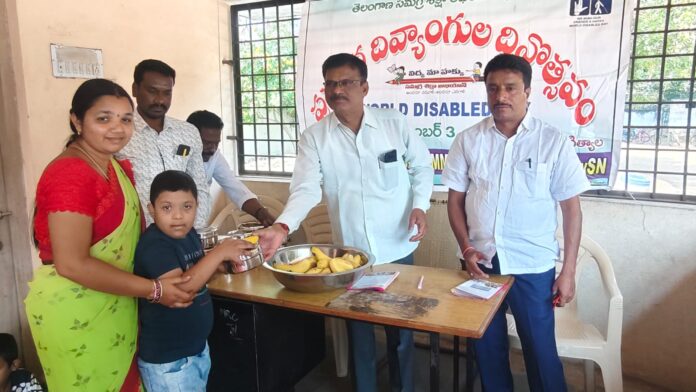 నేటి సాక్షి – జగిత్యాల*( రాధారపు నర్సయ్య )దివ్యాంగ విద్యార్థులను ఆదరించాలని వారిని దేవుడిచ్చిన ప్రసాదంగా భావించాలని భారంగా భావించకూడదని జిల్లా విద్యాధికారి రాము అన్నారు.జగిత్యాల పట్టణంలోని భవిత కేంద్రంలో అంతర్జాతీయ దివ్యాంగుల దినోత్సవం సందర్భంగా ముఖ్యఅతిథిగా హాజరయ్యారు. ఈ సందర్భంగా ఆయన మాట్లాడుతూ దివ్యాంగులను ప్రోత్సహించి శారీరక మానసిక ఎదుగుదలకు తోడ్పడాలని వారన్నారు. పి ఆర్ టి యు టి ఎస్ జగిత్యాల జిల్లా శాఖ అధ్యక్షులు బోయిని పెల్లి ఆనంద్ రావు మాట్లాడుతూ దివ్యాంగులు సామాజికంగా ఆర్థికంగా రాజకీయంగా సాంస్కృతి విభాగాల్లో ఎదగాలని దివ్యాంగుల దినోత్సవం ముఖ్య ఉద్దేశ్యమన్నారు.దివ్యాంగులను గౌరవించి వారి అవసరాలను తీర్చి సమాన హక్కులు కల్పించి సమాజాభివృద్ధిలో భాగస్వాములు చేయాలని అన్నారు. ఈ సందర్భంగా దివ్యాంగ విద్యార్థులకు నిర్వహించిన ఆటల పోటీలలో గెలుపొందిన విద్యార్థులకు జిల్లా విద్యాధికారి బహుమతులు అందజేశారు.ఈ కార్యక్రమంలో ఐ ఆర్ ఈ పి లు రాజేందర్ రాజబాబు విద్యార్థుల తల్లిదండ్రులు పాల్గొన్నారు.___