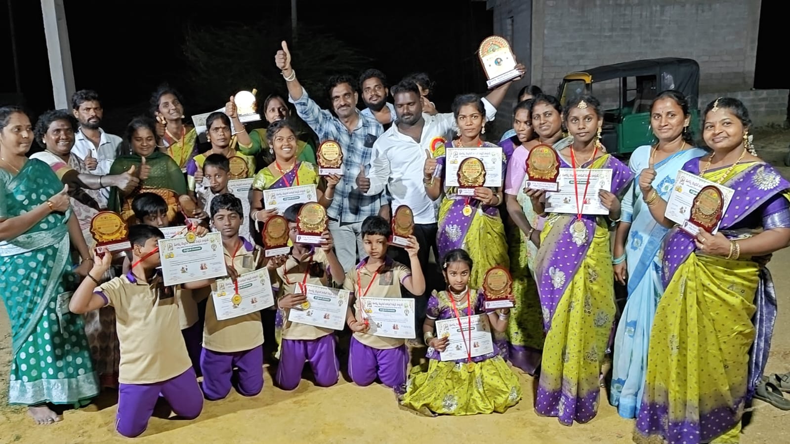 నేటి సాక్షి తిరుపతి *తిరుపతి రూరల్*తిరుపతి రూరల్ దుర్గ సముద్రం లేఔట్ (జగనన్న కాలనీ)లో సంక్రాంతి సంబరాలు అంబరాన్ని అంటాయి తిరుపతిలో జానపద సంక్రాంతి సంబరాల్లో మార్పు కల్చరల్ సోషల్ సర్వీస్ సొసైటీ ఆధ్వర్యంలో సాంస్కృతిక కార్యక్రమాల్లో భాగంగా కాలనీ కోలాట బృందం బహుమతి అందుకుని సంక్రాంతి ఉత్సవాల్లో భాగంగా గుండాల గంగమ్మ ఆలయం వద్ద నరసింహారెడ్డి తో కలిసి కేక్ కట్ చేసి సంబరాలు జరుపుకున్నారు అనంతరం గుండాల గంగమ్మ ఆలయం వద్ద భారీ సంఖ్యలో మహిళలు ముగ్గులు పోటీలు పాల్గొన్నారు పోటీల్లో పాల్గొని ప్రతిభ కనబరిచిన విజేతలకు కామసాని నరసింహా రెడ్డి దంపతులు, గ్రామ పెద్దలు బహుమతులనుఅందజేశారు సంక్రాంతి పండుగ పురస్కరించుకుని కోలాటం బృందానికి యూనిఫాం అందజేశారు