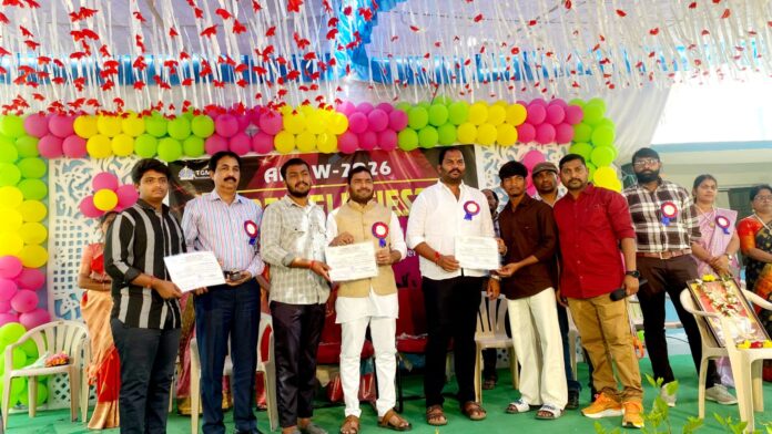 నేటి సాక్షి, ధర్మారం(ఫిబ్రవరి 16) : పెద్దపల్లి జిల్లా ధర్మారం మండల కేంద్రంలోని ఆదర్శ పాఠశాలలో సోమవారం వీడ్కోలు మరియు వార్షికోత్సవ వేడుకలు ఘనంగా నిర్వహించారు. ఈ సందర్భంగా పాఠశాల ప్రిన్సిపాల్ ఈరవేణి రాజ్ కుమార్ మాట్లాడుతూ.. ఇంటర్ విద్యార్థులు, తొమ్మిదవ మరియు పదవ తరగతి విద్యార్థులకు వీడ్కోలు కార్యక్రమం నిర్వహించామని తెలిపారు. అలాగే ఆరవ తరగతి నుండి ఎనిమిదవ తరగతి విద్యార్థులకు వార్షికోత్సవ వేడుకలు నిర్వహించినట్లు పేర్కొన్నారు.ప్రస్తుత విద్యా సంవత్సరంలో నిర్వహించిన వివిధ విద్యా, సాంస్కృతిక మరియు క్రీడా పోటీలలో ప్రతిభ కనబరిచిన విద్యార్థులకు బహుమతులు అందజేశారు. ఈ కార్యక్రమానికి ముఖ్య అతిథిగా హాజరైన ధ్యాగేటి ప్రవీణ్ యాదవ్ ఫౌండేషన్ వ్యవస్థాపకులు ధ్యాగేటి ఉదయ్ మాట్లాడుతూ.. విద్యార్థులు ప్రభుత్వ విద్యాసంస్థల్లో చదివి ఉన్నత లక్ష్యాలను సాధించాలని కోరారు. క్రీడల్లో జాతీయ స్థాయిలో రాణించిన విద్యార్థులను ప్రత్యేకంగా సత్కరించి బహుమతులు అందజేశారు.విద్యార్థులు భవిష్యత్తులో మంచి విజయాలు సాధించి తమ గ్రామం, రాష్ట్రం, దేశానికి సేవ చేయాలని ప్రిన్సిపాల్ ఆకాంక్షించారు. ఈ కార్యక్రమంలో ఉపాధ్యాయులు, తల్లిదండ్రులు, విద్యార్థులు పాల్గొన్నారు.