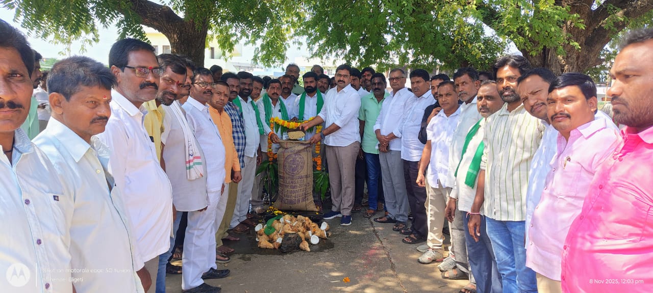 నేటి సాక్షి, ధర్మారం (నవంబర్ 8)* : పెద్దపల్లి జిల్లా ధర్మారం మండల కేంద్రంలోని మేడారం ప్యాక్స్ ఆధ్వ్యర్యంలో నిర్వహిస్తున్న ధర్మారం వ్యవసాయ మార్కెట్ యార్డ్లో ధాన్యం కొనుగోలు కేంద్రం ను తెలంగాణ రాష్ట్ర సంక్షేమ శాఖ మంత్రి అడ్లూరి లక్ష్మణ్ కుమార్ ఆదేశాల మేరకు వ్యవసాయ మార్కెట్ కమిటీ చైర్మన్ లావుడ్య రూప్లా నాయక్, మేడారం ప్యాక్స్ చైర్మన్ ముత్యాల బాలరాం రెడ్డి కలిసి ధాన్యం కొనుగోలు కేంద్రం ను ప్రారంభించారు. ఈ సందర్భంగా వ్యవసాయ మార్కెట్ కమిటీ చైర్మన్ మాట్లాడుతూ… రైతులు తాము పండించిన ధాన్యాన్ని కొనుగోలు కేంద్రంలో విక్రయించి ప్రభుత్వ మద్దతు ధర పొందాలని కోరారు. ఈ కార్యక్రమంలో వ్యవసాయ మార్కెట్ కమిటీ చైర్మన్ లావుడ్యా రూప్లా నాయక్, కాంగ్రెస్ పార్టీ మండల అధ్యక్షులు గాగిరెడ్డి తిరుపతి రెడ్డి, మార్కెట్ కమిటీ వైస్ చైర్మన్ అరిగే లింగయ్య, మేడారం ప్యాక్స్ చైర్మన్ ముత్యాల బలరాం రెడ్డి, వైస్ చైర్మన్ సామంతుల రాజమల్లయ్య, ఏ ఎం సి డైరెక్టర్లు కాంపెల్లి రాజేశం, జనగామ తిరుపతి, ఈదుల శ్రీనివాస్, గంధం మహిపాల్, అలువాల రాజేశం, కొంగ భూమయ్య, వడ్లకొండ అంజయ్య, కోలా శ్రీనివాస్, ఎలగందుల అశోక్, ఆవుల శ్రీనివాస్, పాలక వర్గ సభ్యులు, కాంగ్రెస్ పార్టీ యూత్ నియోజకవర్గ అధ్యక్షులు అశోద అజయ్, మండల కాంగ్రెస్ పార్టీ యూత్ అధ్యక్షులు సోగాల తిరుపతి, మాజీ మార్కెట్ కమిటీ వైస్ చైర్మన్ పాలకుర్తి రాజేశం గౌడ్, పార్టీ సీనియర్ నాయకులు కాడే సూర్యనారాయణ, దేవి జనార్దన్, ఒడ్నాల శంకరయ్య, కాంగ్రెస్ పార్టీ నాయకులు, కార్యకర్తలు మరియు సెంటర్ ఇంచార్జ్ లు తదితరులు పాల్గొన్నారు.