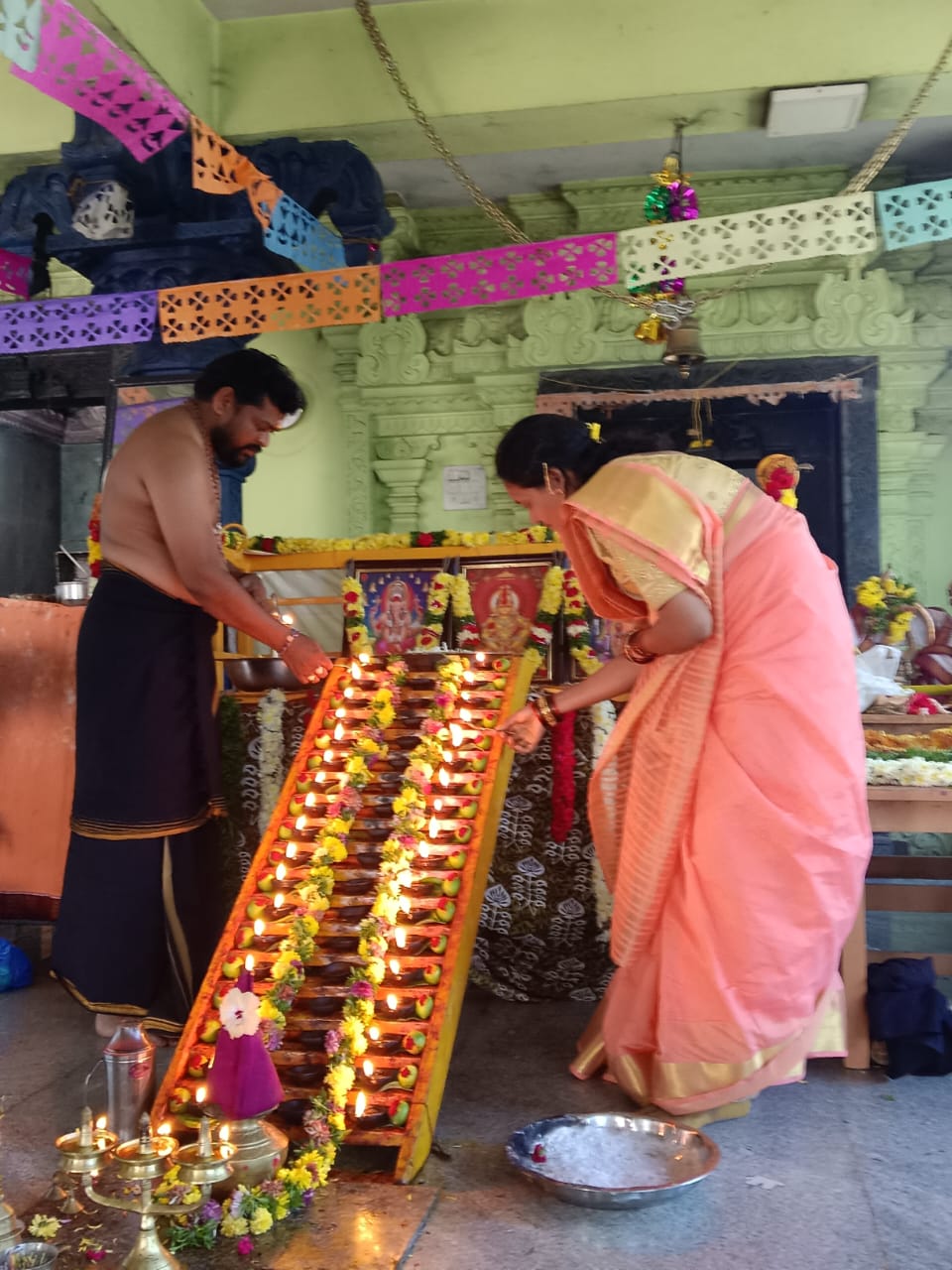 నేటి సాక్షి, బాపట్ల జిల్లా (బాపట్ల రూరల్) బాపట్ల నందిరాజు తోట శివాలయంలో మరీదు వెంకటేశ్వరరావు, దాసరి వెంకటేశ్వరరావు గురు స్వాముల ఆధ్వర్యంలో గురువారం భక్తి పరవశంతో అయ్యప్ప స్వామి పడి పూజా కార్యక్రమం బాపట్ల ఐ న్యూస్ పరిశా వెంకట్ పాల్గొని ఘనంగా నిర్వహించారు.ఈ కార్యక్రమంలో అయ్యప్ప, భవాని, శివ స్వాములు పెద్ద సంఖ్యలో పాల్గొని భక్తి శ్రద్ధలతో స్వామి సేవలో తరిశారు.ఈ సందర్భంగా బాపట్ల ఐ న్యూస్ రిపోర్టర్ పరిశా వెంకట్ స్వయంగా స్వాములందరికీ సద్ది కార్యక్రమం ఏర్పాటు చేసి సేవాభావాన్ని ప్రదర్శించారు. పాల్గొన్న స్వాములు ఆయన భక్తిని ప్రశంసించి, అయ్యప్ప స్వామి దయ, దివ్య కృప ఎల్లప్పుడూ వెంకట్ పై ఉండాలని ఆశీర్వదించారు.పడి పూజా, సద్ది సేవలతో ఆలయ ప్రాంగణం “స్వామియే శరణం అయ్యప్ప” నినాదాలతో మార్మోగి, భక్తి వాతావరణం నెలకొంది. ఈ కార్యక్రమంలో నందిరాజుతోట గ్రామ పెద్దలు మరియు అయ్యప్ప భజన భక్తి బృందం పాల్గొన్నారు.