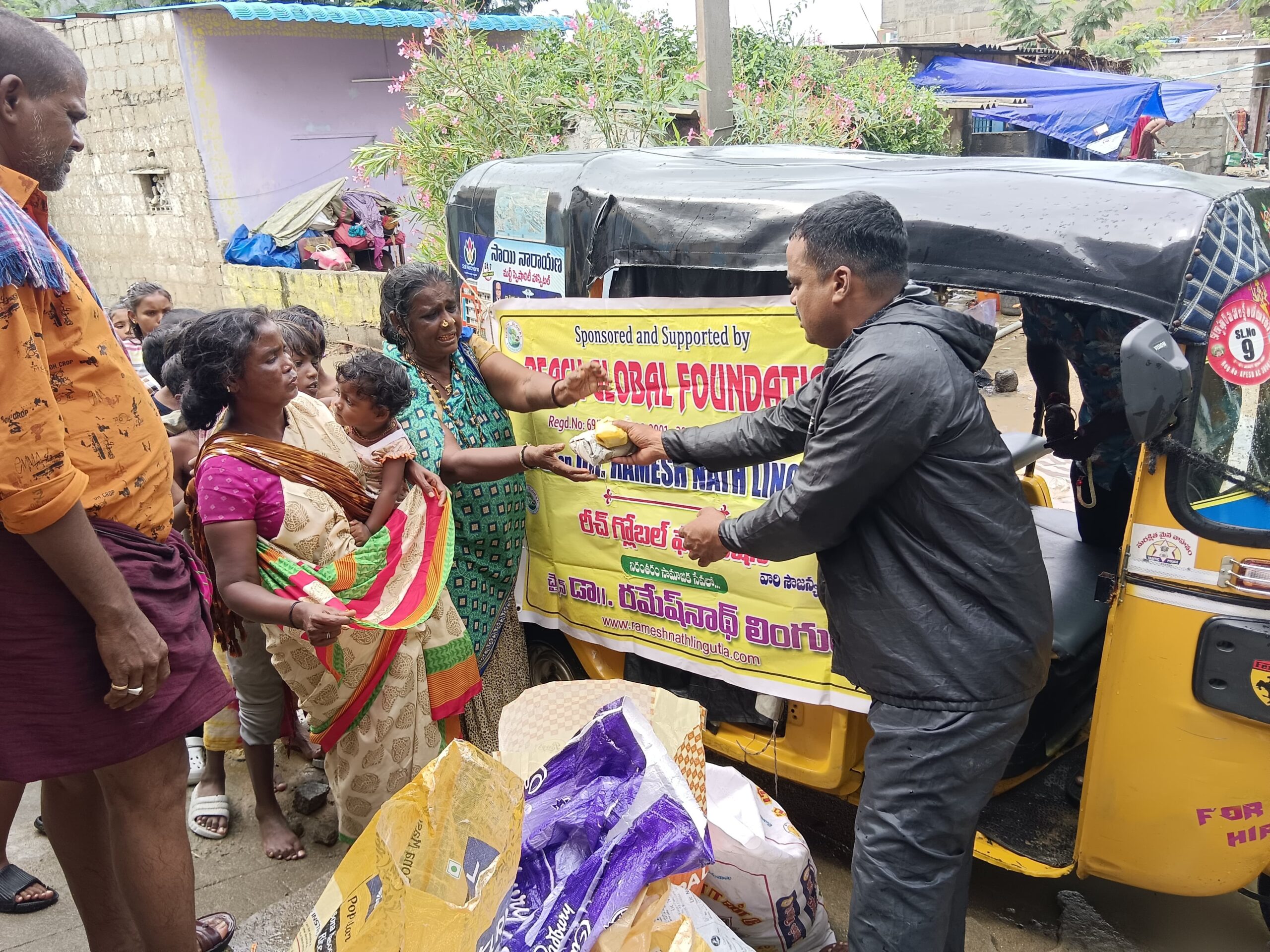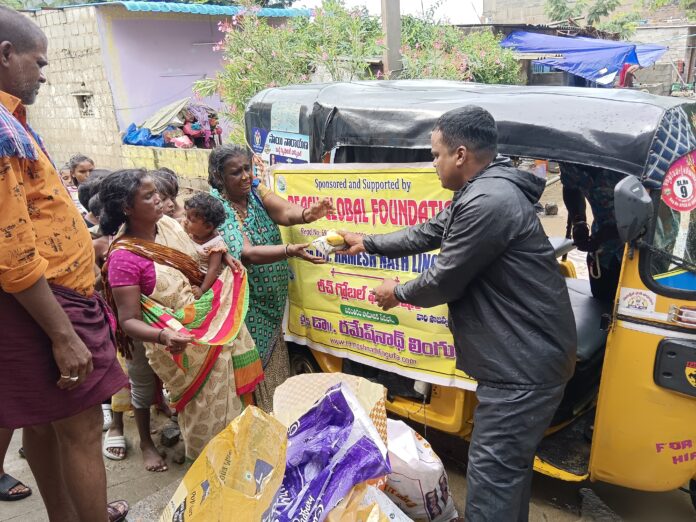 * నేటి సాక్షి తిరుపతి (బాదూరు బాల)ఇటీవల రెండు రోజులుగా కురుస్తున్న ఎడతెరిపి లేని వర్షాలకు తిరుచానూరు సమీపంలోని కలెక్టర్ ఆఫీస్ పక్కన ఉన్నటువంటి నక్కల కాలనీ లోతట్టు ప్రాంతంలో ఉండడం మూలంగా నక్కల కాలనీ వీధుల్లో మోకాళ్ల లోతు నీళ్లు నిలిచిపోయి ఇళ్లలోకి నీళ్లు చేరి కాలనీ వాసులు తీవ్ర ఇబ్బందులు ఎదుర్కోవడం చూసి చలించిన పి4 పథకం ద్వారా నక్కల కాలనీ ని దత్తత తీసుకున్న రీచ్ గ్లోబల్ ఫౌండేషన్ చైర్మన్ డాక్టర్ రమేష్ నాథ్ లింగుట్ల వారిని ఆదుకునేందుకు బుధవారం నక్కల కాలనీ చేరుకున్న ఆయన మాట్లాడుతూ దత్తత తీసుకున్న నక్కల కాలనీక ప్రజలకు ఎలాంటి ఇబ్బంది కలగకూడదనే లక్ష్యంతో వెనువెంటనే నేను జిల్లా అధికారులకు ఫోన్ చేసి రీచ్ గ్లోబల్ ఫౌండేషన్ ప్రతినిధి డాక్టర్ మొర్రిమేకల దేవరాజులను కాలనీ కి పంపించి అక్కడి ప్రజలకు కావాల్సినటువంటి నిత్య,అత్యవసరాలను తీర్చడంతో పాటు అధికారుల తక్షణ సహకారంతో నక్కల కాలనీ చేరిన నీటిని బయటికి వెళ్లేలా జెసిబి యంత్రాలను ఉపయోగించి బయటకు నీటిని తోడి పోసి అక్కడి ప్రజలకు నివాస యోగ్యం గా చేయడమే కాకుండా కాలనీలో నివసిస్తున్న వృద్ధులు, వికలాంగులు,బాలింతలు,గర్భిణీలు ,దినసరి పూసల ను అమ్ముకునే కూలీలు అందరికీ దాదాపు 300 మందికి హోటల్ నుంచి రుచికరమైన మధ్యాహ్న భోజనం ఏర్పాట్లు చేసి సమాజంలో అందరూ సమానం గా జీవించాలని , నేను దత్తత తీసుకున్న కాలనీ ని అభివృద్ధి పథం లో చూపడమే నా జీవిత సంకల్పం అని కాలనీ అభివృద్ధికి నాకు అన్ని వేళలా సహకరిస్తున్న జిల్లా కలెక్టర్ వెంకటేశ్వర్లుకి జిల్లా పంచాయితీ అభివృద్ధి అధికారి సుశీలా దేవికి ఈ సందర్భంగా కృతజ్ఞతలు తెలియజేశారు. మా ఇళ్లలోకి నీరు చేరాయని తెలిసిన వెంటనే మా కాలనీ ను దత్తత తీసుకున్న దాత డాక్టర్ రమేష్ నాథ్ లింగుట్ల స్పందించినటువంటి తీరు మాకు అందిస్తున్న సహాయం ఈ జన్మకి మేము మరువలేమని కాలనీ నాయకులు రాజ్ కుమార్, శీను,శంకర్, గరామణి తదితరులు తెలియ జేశారు.మధ్యాహ్నం ఆహార పంపిణీ కార్యక్రమంలో జిల్లా విద్యాశాఖ నుంచి ధనుంజయ నాయుడు,డాక్టర్ సుధాకర్ నాయుడు, డాక్టర్ చంద్రశేఖర్ నాయుడు తదితరులు పాల్గొన్నారు.