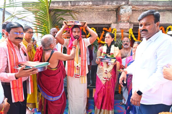 *నయనానందకరం..నరసింహుడి కళ్యాణోత్సవం** ధర్మపురి శ్రీ లక్ష్మీనరసింహ స్వామి కళ్యాణానికి పట్టు వస్త్రాలు సమర్పించిన జిల్లా కలెక్టర్ దంపతులు* పూర్ణకుంభంతో స్వాగతం – ముత్యాల తలంబ్రాలు సమర్పణ—–*