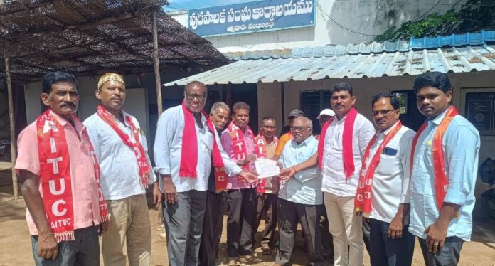 నేటి సాక్షి:– మున్సిపల్ కార్మికుల న్యాయమైన సమస్యలు పరిష్కరించాలని కోరుతూ అనేక సంవత్సరాల నుండి పోరాటం చేస్తున్నప్పటికీ రాష్ట్ర ప్రభుత్వం ఏమాత్రం స్పందించడం లేదని రాష్ట్ర ప్రభుత్వ నిర్లక్ష్యానికి నిరసనగా నవంబర్ 3వ తేది నుండి రాష్ట్ర వ్యాప్తంగా చేపట్టే మెరుపు సమ్మె నిర్వహిస్తున్నామని సమ్మె కు సిద్ధం కావాలని *ఏఐటియుసి రాష్ట్ర కార్యదర్శి ఎం. రమేష్ బాబు, సీపీఐ తాలూకా కార్యదర్శి ప్రతాప్ లు పిలుపునిచ్చారు.. మున్సిపల్ కార్మికుల సమ్మె జయప్రదం పై బిసన్న అధ్యక్షతన మున్సిపల్ మేనేజర్ కు సమ్మె నోటిస్ ఇవ్వడం జరిగింది.ఈ సందర్భంగా వారు మాట్లాడుతూ మున్సిపల్ కార్మికులకు జరిగిన పిఆర్సి ప్రకారం వేతనాలు పెంపుదల చేయాలని, పేరిగిన జనాభా కనుగుణంగా ప్రతి మున్సిపల్ లో వర్కర్స్ ను పెంపుదల చేసి డైలీ వేజ్, పార్ట్ టైం కార్మికులను ఔట్సోర్సింగ్ కార్మికులుగా గుర్తించాలని, ఔట్సోర్సింగ్ కార్మికులను రెగ్యులర్ చేయాలని వారు కోరారు. మున్సిపల్ కార్మికుల సమస్యల మీద ఎన్నిసార్లు చర్చించిన సమస్యలు పరిష్కారం కాలేదని ఇది మాటికి ప్రభుత్వ తప్పిదమేనని ప్రభుత్వమే సమ్మెకు ప్రోత్సహించే రీతిలో సమస్యలు పరిష్కరించకుండా కాలయాపన చేస్తుందన్నారు. కార్మికులు చనిపోయిన వారి కుటుంబాల వారిని హౌసింగ్ ఔట్సోర్సింగ్ పద్ధతిలో తీసుకోవాలన్నారు.. 2023 సమ్మె ఒప్పందంలో పెంచిన వేతనాలను ఏమాత్రం అమలు చేయడం లేదన్నారు. తక్షణమే సమస్యలు పరిష్కారం చేయాలని లేని యెడల నవంబర్ 3వ తేదీ నుండి సమ్మెలోకి వెళ్తామని ఆయన రాష్ట్ర ప్రభుత్వానికి హేచ్చరించారు.. అక్టోబర్ 23వ తేదీన మున్సిపల్ కార్యాలయాల దగ్గర ధర్నా 25వ తారీఖున బైక్ ర్యాలీలు 27 తేదీన అనంతపురం ఆర్డీ కార్యాలయం దగ్గర ధర్నా కార్యక్రమం నిర్వహిస్తున్నట్లు వారు తెలిపారు. సమ్మె జరగక మునుపే సమస్యలు పరిష్కారం కోసం ప్రభుత్వం కృషి చేయాలని లేక పక్షంలో మెరుపు సమ్మె తప్పదని వారి హెచ్చరించారు.ఈ కార్యక్రమంలో మున్సిపల్ యూనియన్ నాయకులు నాగరాజు,రాజు శ్రీరాం, దొరస్వామి, నరసింహుద్, చిన్న నందయ్య, శంకర్ రావ్, రాజ్, దానెమయ్య బట్టు విజయ్ తదితరులు పాల్గొన్నారు..