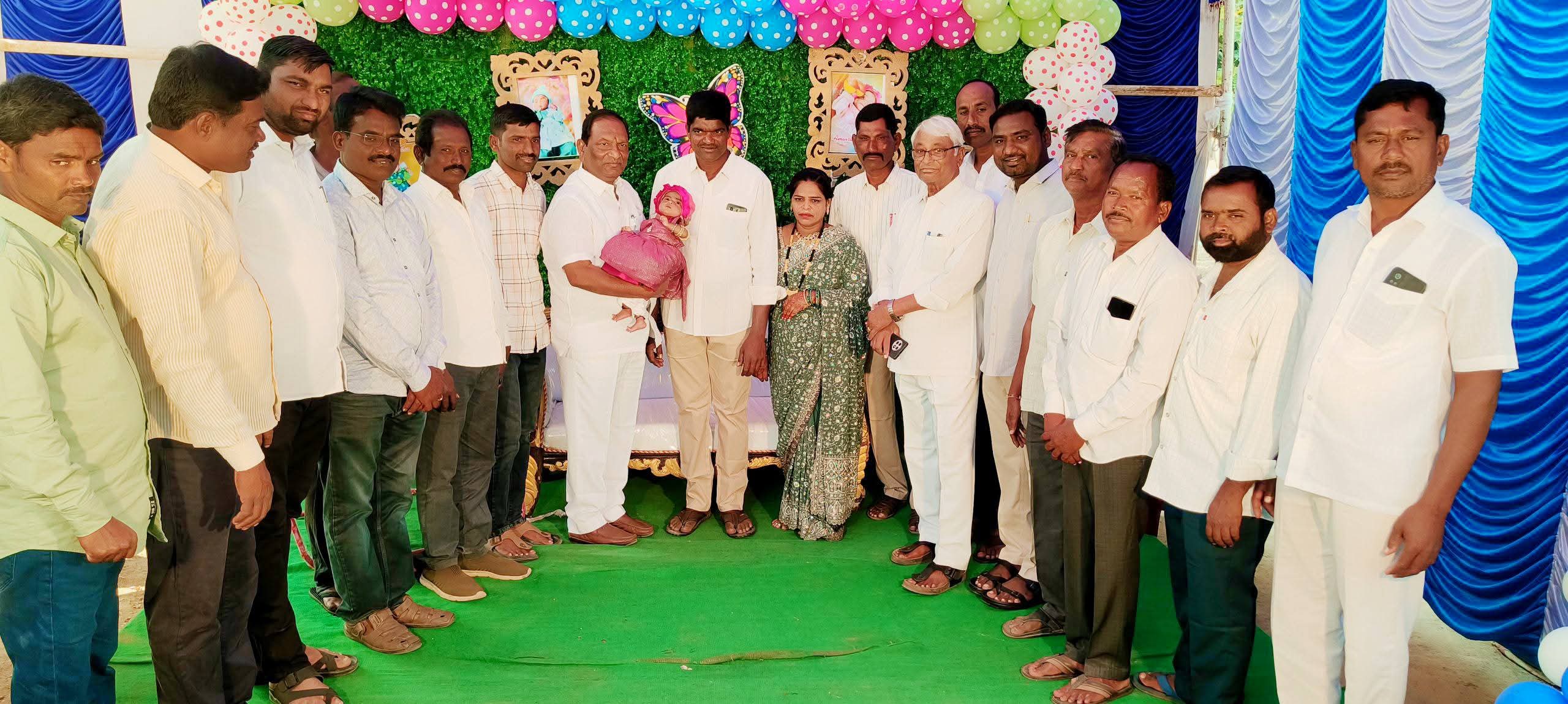 *నేటి సాక్షి, ఎండపల్లి:* మండల పరిధిలోని మారేడుపల్లి గ్రామానికి చెందిన బీఆర్ఎస్ పార్టీ నాయకులు మహ్మద్ రహీం కూతురు నామకరణ మహోత్సవం గురువారం నిర్వహించగా మాజీ మంత్రి కొప్పుల ఈశ్వర్ హజరై చిన్నారిని ఆశీర్వదించారు. దీనికి ముందు గ్రామ పంచాయితీ అవరణలో స్థానిక ఎన్నికల్లో బీఆర్ఎస్ బలపరచడంతో గెలుపొందిన ఉప సర్పంచ్, వార్డు సభ్యులను శాలువలతో సన్మానించి తాజా రాజకీయ పరిస్థితుల గూర్చి చర్చించి గ్రామాభివృద్ధికి కృషి చేయాలన్నారు. ఈ కార్యక్రమంలో బీఆర్ఎస్ పార్టీ మండల అధ్యక్షులు సింహచలం జగన్, శానబండ సర్పంచ్ గాధం బాస్కర్, తాజా మాజీ గ్రామ సర్పంచ్ గంధం లక్ష్మీనారాయణ, సీనియర్ నాయకులు వ్యాల్ల రాంరెడ్డి, పడిదం నారాయణ, పడిదం వెంకటేష్, మారం జగన్మోహన్ రెడ్డి, ఆరెల్లి బాబా రాజ్, గంధం రవి, గౌరి చిరంజీవి, గ్రామ శాఖ అధ్యక్షులు కొమ్ము సంజీవ్, వనం రామనయ్య, అరికిల్ల మహేంధర్, ఉప్పు రాజయ్య, శేరే సత్తయ్య, రాజిరెడ్డి, జితేంధర్ తదితరులు పాల్గొన్నారు.