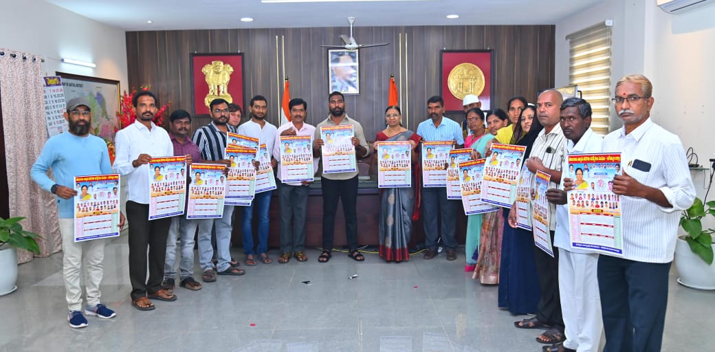 నేటి సాక్షి – జగిత్యాల టౌన్ (పూరెళ్ల బాపు)…………………………………తెలంగాణ నాల్గవ తరగతి ఉద్యోగులు రూపొందించిన 2026 నూతన సంవత్సర క్యాలెండర్ ను జగిత్యాల జిల్లా కలెక్టర్ సత్యప్రసాద్ ఆవిష్కరించారు.గురువారం జిల్లా కలెక్టర్ కార్యాలయంలో నాల్గవ తరగతి ఉద్యోగుల సంఘం జగిత్యాల జిల్లా అధ్యక్షురాలు క్యారoగుల అరుణ సభ్యులతో కలిసి వెళ్లగా జిల్లా కలెక్టర్ సత్యప్రసాద్, అదనపు కలెక్టర్లు లత, రాజగౌడ్ లతో కలిసి క్యాలెండర్ ఆవిష్కరణ చేసి ఉద్యోగులను అభినందించారు.అలాగే టీ ఎన్ జీ ఓ జిల్లా అధ్యక్షులు మిర్యాల నాగేందర్ రెడ్డి అధ్యక్షురాలు అరుణ తో పాటు సభ్యులకు అభినందనలు తెలిపారు.ఈ కార్యక్రమంలో నారాయణ, శ్రీను , సతీష్, రాజు, కె.భాగ్య, సృజన, రైషం, రాజు, శంకరమ్మ, రాజశేఖర్ రెడ్డి, మహేష్, మురళి, అరుణ, వసంత, గంగా రామ్, లక్ష్మి, రాజు, రాయనర్సు, స్వప్న, చెలన్, గంగా రామ్, సోమ శేఖర్, సుమన్, రాజేందర్, రషీద్ తదితరులున్నారు.
