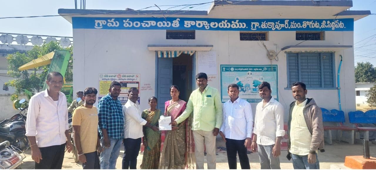 నేటి సాక్షి తొగుట జనవరి 08తుక్కాపూర్ గ్రామంలో నిరుపేద కుటుంబమైన చిక్కుడు రేణుక కుటుంబానికి ముఖ్యమంత్రి సహాయ నిధి ద్వారా 9000 రూపాయల చెక్కును అందించడం జరిగింది.ఈ కార్యక్రమంలో గ్రామ సర్పంచ్ చిక్కుడు (మాస్టీ) కళావతి స్వామి ముదిరాజ్, బోయిని బాలరాజు ముదిరాజ్ మాజీ వార్డ్ మెంబర్, వార్డ్ మెంబర్ గొడుగు శ్రీశైలం, లింగాల మహేష్ వార్డ్ మెంబర్, చిక్కుడు సాయిరాజ్ వార్డ్ మెంబర్, సింధు మహేష్ వార్డ్ మెంబర్, బోయిని లక్ష్మణ్, బరేంకల కరుణాకర్ తదితరులు ఈ కార్యక్రమంలో పాల్గొన్నారు.._