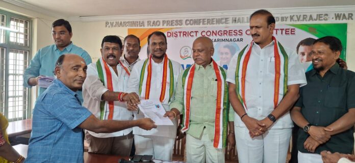 నేటిసాక్షి, కరీంనగర్‌: డీసీసీ, కరీంనగర్‌ సిటీ కాంగ్రెస్‌తో పాటు వివిధ నామినేటెడ్‌ పోస్టుల కోసం మంగళవారం ఆశావహుల నుండి దరఖాస్తులను స్వీకరించారు. కాంగ్రెస్‌ పార్టీ కోసం కష్టపడి పనిచేసిన వారికి పదవుల్లో న్యాయం చేస్తామని పీసీసీ ప్రతినిధులు నమిండ్ల శ్రీనివాస్‌, గౌస్‌పాషా, సుడా చైర్మన్‌ కోమటిరెడ్డి నరేందర్‌రెడ్డి, కార్పొరేషన్‌ కాంగ్రెస్‌ అధ్యక్షుడు వైద్యుల అంజన్‌కుమార్‌ తెలిపారు. సీనియర్‌ నాయకుడు గడ్డం విలాస్‌రెడ్డితో పాటు పలువురు నాయకులు దరఖాస్తులను సమర్పించారు.