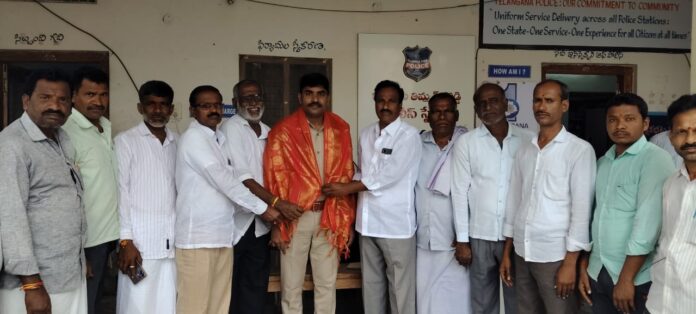 నేటి సాక్షి మండలం నూతన ఎస్సైగా బాధ్యతలు చేపట్టిన పి శ్రీనివాసులు గారిని మండల బిజెపి నాయకులు మర్యాదపూర్వకంగా కలిసి శుభాకాంక్షలు తెలిపి ఘనంగా శాలువా తో సన్మానించారు. ఈ సందర్భంగా ఎస్సై పి, శ్రీనివాసులు మాట్లాడుతూ గ్రామాలలో అందరూ కలిసిమెలిసి ఉండాలని శాంతిభద్రతలకు అందరూ సహకరించాలని , ఆన్లైన్ సైబర్ మోసగాళ్ల వలలో పడకూడదని ఎవరైనా అనుమానస్పదంగా ఊర్లలోకి వస్తే మాకు సమాచారం ఇవ్వాలని అన్నారు.కార్యక్రమం లో మండల అధ్యక్షుడు జి, శ్రీపాద రెడ్డి. బిజెపి పార్టీసీనియర్ నాయకులు హన్మి రెడ్డి,భీమ్ రెడ్డి,మైలగడ్డ రాములు,సూర్య కాంత రెడ్డి,దేవేందర్ రెడ్డి ముంగిలి వీరేష్, ఉమిత్యల పెద్ద కరెప్ప, చిన్న కరెప్పా,కొండన్న, జమ్మన్న, తిమ్మప్ప,కేటిదో డ్డి వీరేష్ ,రఘు, ,రంగాపురం కృష్ణా, వచ్చా నాయక్, తదితరులు పాల్గొన్నారు