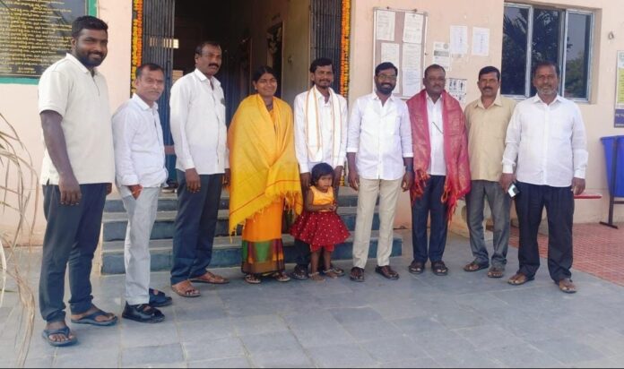 నేటిసాక్షి : జగదేవపూర్ డిసెంబర్ 27 జగదేవపూర్ మండలం తిగుల్ నూతనంగా ఎన్నికైన సర్పంచ్ కుడుదుల రజితను, ఉప సర్పంచ్ శ్రీనివాస్ రెడ్డిని శనివారం రైతుబంధు మాజీ రాష్ట్ర కౌన్సిల్ సభ్యుడు దేవి రవీందర్ శాలువా కప్పి సత్కరించారు. ఈ సందర్భంగా ఆయన మాట్లాడుతూ పెద్ద గ్రామపంచాయతీ అయిన తీగుల్లో భారీ మెజార్టీతో రజిత గెలవడం అభినందనీయమన్నారు. గ్రామ అభివృద్ధి కోసం తమ వంతు కృషి చేస్తూ మంచి పేరు ప్రతిష్టలు తీసుకురావాలని ఆకాంక్షించారు. ఆదర్శ గ్రామం వైపు అడుగులు వేయాలని ప్రజలతో మమేకమై ప్రజా సమస్యల పరిష్కారానికి నిరంతరం ప్రజా నాయకురాలుగా పనిచేయాలని సూచించారు. రాజకీయంగా మరింత ఎదగాలని కోరారు. కార్యక్రమంలో మాజీ సర్పంచ్ ఎల్లయ్య పిఎసిఎస్ మాజీ డైరెక్టర్ భూమయ్య గ్రామ నాయకులు మల్లారెడ్డి మహేందర్ రెడ్డి ఐలయ్య తదితరులు పాల్గొన్నారు.