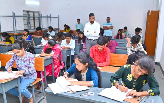 *పకడ్బందీగా ఇంటర్మీడియట్ పరీక్షల నిర్వహణ* * బుధవారం ప్రారంభమైన ఇంటర్మీడియట్ పరీక్షలు* పరీక్ష కేంద్రాన్ని పరిశీలించిన జిల్లా కలెక్టర్ బి. సత్యప్రసాద్—–*
