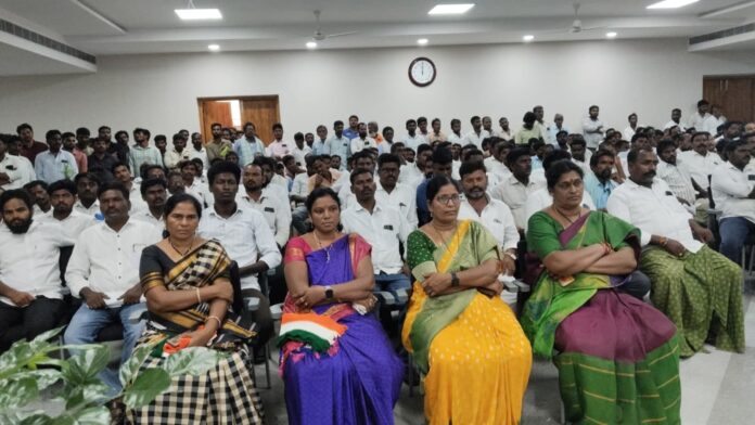 నేటి సాక్షి ప్రతినిధి గద్వాల్ : ( రమేష్ ) : జోగులాంబ గద్వాల జిల్లా కలెక్టరేట్ లోనీ ఐ డి ఓ సి మీటింగ్ హాల్ లో వ్యవసాయ రైతులతో రైతు సంక్షేమ శాఖ సమీక్ష.. జిల్లా కలెక్టర్ మరియు తెలంగాణ వ్యవసాయ&రైతు సంక్షేమ శాఖ కమిషన్ చైర్మెన్ కోదండ రెడ్డి,మరియు కమిటీ సభ్యుల సమావేశం. శుక్రవారం ఉదయం 9:30 గంటలకు పుటన్‌పల్లి గ్రామంలో సాగు పత్తి విత్తనాల పంటలపై ఉత్పత్తి సంబంధిత క్షేత్రస్థాయి పరిస్థితులను సమీక్షించి,రైతుల నుంచి వారి సమస్యలను నేరుగా తెలుసుకున్న చైర్మెన్ మరియు జిల్లా కలెక్టర్ మరియు వ్యవసాయ అధికారులు. తదనంతరం శుక్రవారం ఉదయం 11:30 గంటలకు జిల్లా కలెక్టర్ కార్యాలయంలోని సమావేశ మందిరంలో విత్తన పత్తి పంటకు సంబంధించి రైతులు ఎదుర్కొంటున్న సమస్యలను చర్చించి,వాటికి పరిష్కారానికి సమావేశం నిర్వహించారు ఈ కార్యక్రమంలో ఎఐసిసి కార్యదర్శి,అలంపూర్ మాజీ ఎమ్మెల్యే డాక్టర్ ఎస్.ఏ.సంపత్ కుమార్ పాల్గొన్నారు ఈ సందర్భంగా అక్కడి రైతులు మాట్లాడుతూ కాంగ్రెస్ ప్రజా పాలన రైతుల కోసం ప్రత్యేక సమావేశాలు ఏర్పాటు చేసి రైతుల సమస్యలు నేరుగా తెలుసుకుని పరిష్కార దిశగా రైతు కమిషన్ చైర్మెన్ మరియు సభ్యులని పంపి నేరుగా వ్యవసాయ రైతులతో మాట్లాడం తో రైతులకు న్యాయం చేకూరుతుంది అనే నమ్మకం ఉంది అన్నారు.