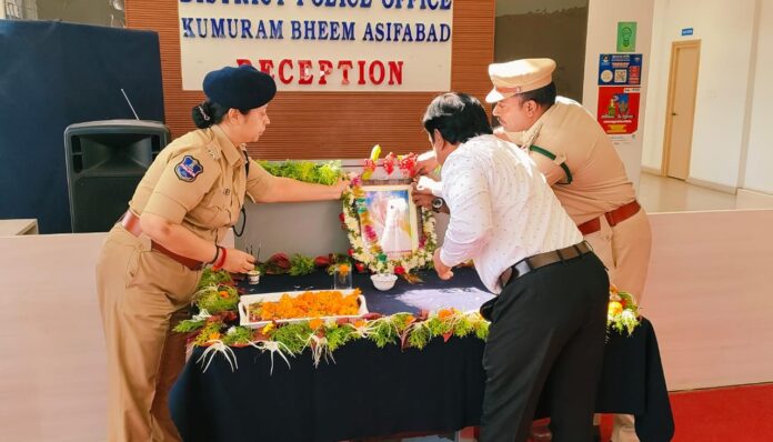 నేటి సాక్షి కొమరం భీం ఆసిఫాబాద్ జిల్లాలో కేంద్ర మాజీ మంత్రి గడ్డం వెంకటస్వామి వర్ధంతిని ప్రభుత్వ ఆదేశాల మేరకు ఆసిఫాబాద్ జిల్లా పోలీస్ కార్యాలయంలో అధికారికంగా నిర్వహించారు. ఆసిఫాబాద్ జిల్లా ఎస్పీ నితికా పంత్ ఐపీఎస్ గారు ఆయన చిత్రపటానికి పూలమాల వేసి ఘనంగా నివాళులు అర్పించారు. ఈ సందర్భంగా జిల్లా ఎస్పీ నితిక పంత్ గారు మాట్లాడుతూ.. సుదీర్ఘకాలం పాటు కేంద్ర మంత్రిగా, పార్లమెంటు సభ్యునిగా ప్రాతినిథ్యం వహించిన వెంకటస్వామి దళిత, బడుగు, బలహీన, అణగారిన వర్గాల అభ్యున్నతి కోసం విశేషంగా కృషి చేశారని, ఆయన సేవలను గుర్తిస్తూ నిరంతరం స్మరించుకునేలా ప్రభుత్వం అధికారికంగా జయంతి, వర్ధంతి వేడుకలను నిర్వహిస్తోందని అన్నారు. కార్యక్రమంలో పోలీస్ అధికారులు, సిబ్బంది తదితరులు పాల్గొన్నారు.