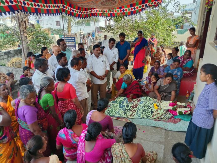నేటి సాక్షి, నారాయణపేట, జనవరి 2, ( రిపోర్టర్ ఇమామ్ సాబ్ ),నారాయణపేట జిల్లాలోని మరికల్ మండలoలోని రెండో వార్డులో నివసిస్తున్న కురువ గద్దె గూడెం పద్మమ్మ అనారోగ్యంతో శుక్రవారం నాడు మృతి చెందడం జరిగింది. కాంగ్రెస్ పార్టీ నాయకులు పూలమాలలు వేసి నివాళులర్పించడం జరిగింది, మృతి చెందిన కుటుంబ సభ్యులకు నారాయణపేట జిల్లా కాంగ్రెస్ పార్టీ నాయకులు ఎస్. సూర్య మోహన్ రెడ్డి, మండల అధ్యక్షులు వీరన్న, మరికల్ గ్రామ అధ్యక్షులు హరీష్ కుమార్, బొంత మొగులయ్య ఎల్ రాములు , నాగరాజు కాంగ్రెస్ నాయకులు కార్యకర్తలు పరామర్శించి పూలమాలలు వేసి నివాళులర్పించారు..