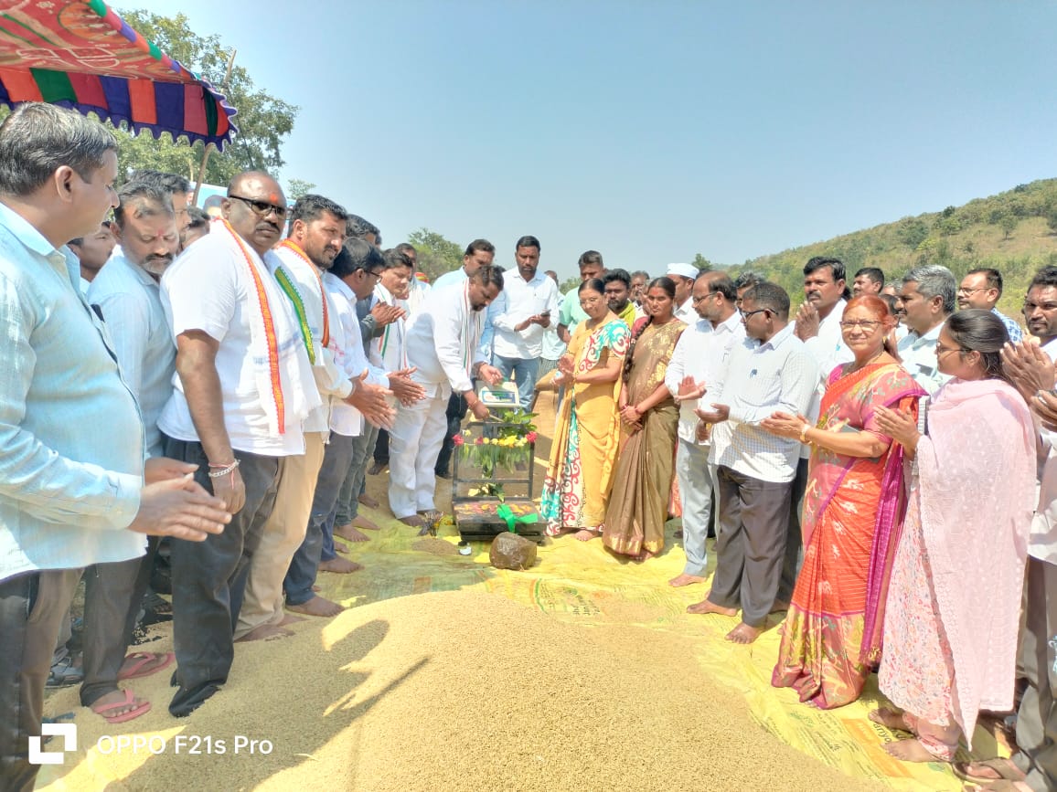 నేటి సాక్షి,బుగ్గారం.నక్క శంకరయ్య రిపోర్టర్బుగ్గారం మండల కేంద్రంలో శుక్రవారం నాడు ఎస్సీ,ఎస్టీ దివ్యాంగుల శాఖ మంత్రి అడ్లూరి లక్ష్మణ్ కుమార్ పలు అభివృద్ధి కార్యక్రమాలకు శంకుస్థాపన చేశారు. వివరాల్లోకెళ్తే బుగ్గారం మండల కేంద్రానికి చెందిన పోచమ్మ ఆలయ కమిటీ సభ్యులు మినీ ఫంక్షన్ హాల్ కొరకై మంత్రి అడ్లూరిని సంప్రదించగా అభివృద్ధిలో భాగంగా పోచమ్మ కమిటీ సభ్యులకు వారు అడిగిన 10 లక్షల కాకుండా అదనంగా 5 లక్షల రూపాయలు కూడా అందజేస్తామని హామీ ఇచ్చారు.తదనంతరం రెవెన్యూ స్థలంలో ఉన్న భూమిని ఐకెపి సెంటర్ కొరకు రైతుల అవసరం దృష్ట్యా అందజేసి ఐకెపి సెంటర్ ను ప్రారంభించారు. తదనంతరం సిరికొండ గ్రామంలో వడ్ల కొనుగోలు కేంద్రాన్ని ప్రారంభించారు.ఈ కార్యక్రమంలో మంత్రి వెంట రెవెన్యూ సిబ్బంది మరియు ఐకేపీ సిబ్బంది వ్యవసాయ అధికారులు ఎంపీడీవో సిబ్బంది జిపి స్పెషల్ ఆఫీసర్ మండల కాంగ్రెస్ అధ్యక్షులు వేముల సుభాష్ ఉపాధ్యక్షుడు నరస గౌడ్ యూత్ అధ్యక్షులు అంజిత్ కుమార్ రైతులు కాంగ్రెస్ నాయకులు తదితరులు పాల్గొన్నారు.