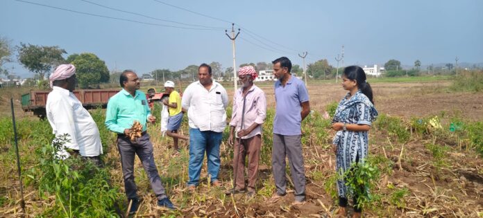 నేటి సాక్షి, కొడిమ్యాల మంగళవారం.27 తిమ్మయ్యపల్లి గ్రామము లో జిల్లా వ్యవసాయ అధికారి వి. భాస్కర్.పసుపు, నువ్వులు. వరి. పంటలను పరిశీలించారు. రైతు నేస్తం కార్యక్రమం అనంతరం పసుపు కోత చేపడుతున్న రైతు డబ్బు లచిరెడ్డి ఫీల్డ్ ను సందర్శించి రైతు తో మాట్లాడి పసుపు పంట వివరాలు తెలుసుకోవడం జరిగింది.అలాగే ప్రత్తి పంట కొత అనంతరం నువ్వులు సాగు చేపట్టిన ఫీల్డ్ ను సందర్శించి, యాసంగి సాగు కి నువ్వుల పంట వేసుకోవాలని సూచించారు. అలాగే వరి పంటను సందర్శించి తగు సూచనలు సలహాలు ఇచ్చారు. ఈ కార్యక్రమం లో మండల వ్యవసాయ అధికారి పి.జ్యోతి,మాజీ ఉపసర్చంచ డబ్బు ముత్యం రెడ్డి.రైతులు పాల్గొన్నారు.