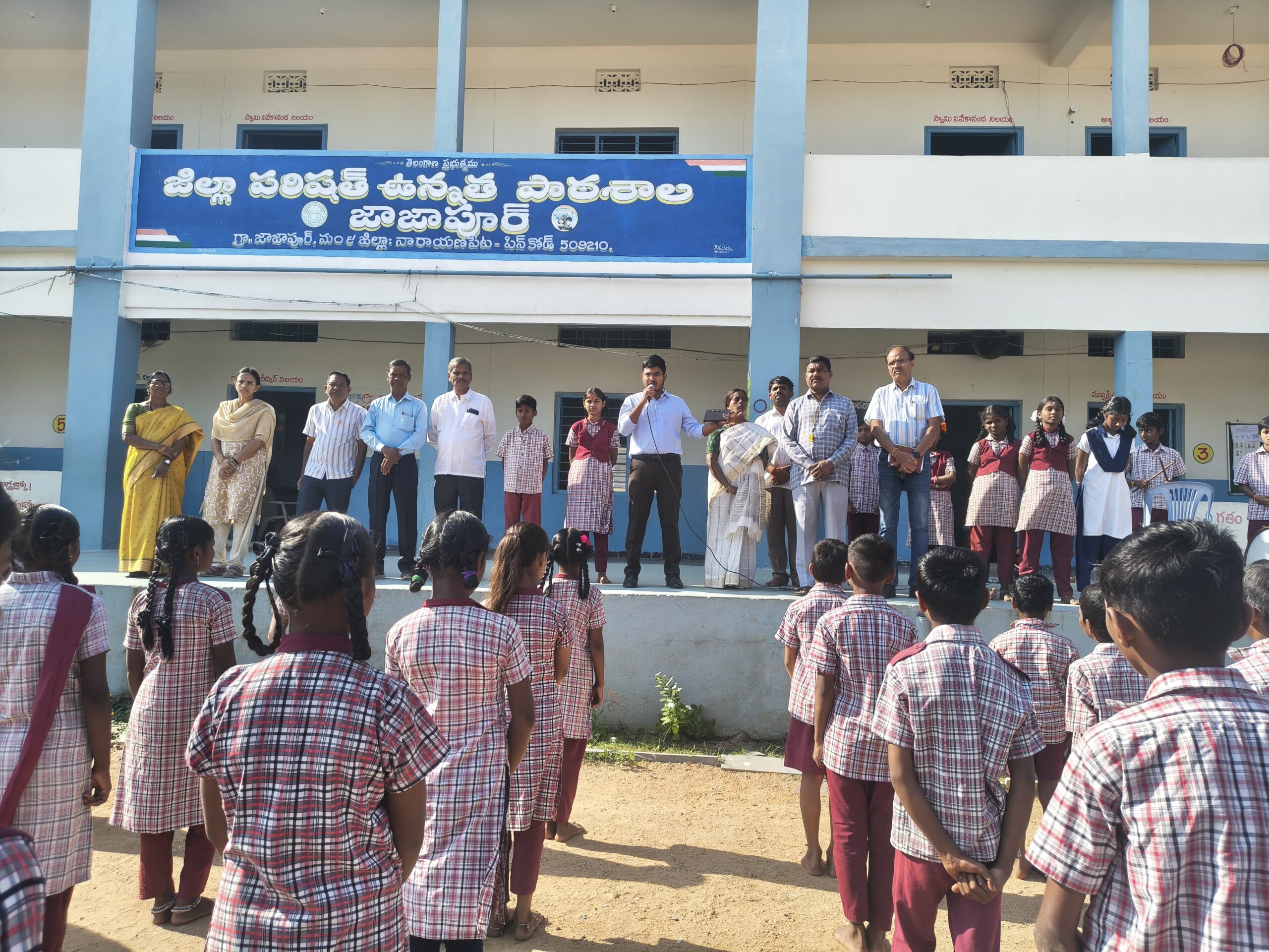 నేటి సాక్షి నారాయణపేట నవంబర్ 17, నారాయణపేట డిప్యూటీ కలెక్టర్ పాణి రాజ్ జిల్లా పరిషత్ ఉన్నత పాఠశాల జాజాపూర్ సందర్శించడం జరిగింది ఈ సందర్భంగా పదవ తరగతి విద్యార్థుల తల్లిదండ్రుల సమావేశంలో విద్యార్థుల యొక్క చదువును గురించి ప్రతి రోజు విద్యార్థులు 5 గంటలకు లేచి చదవాలని విద్యార్థుల తల్లిదండ్రులు పాఠశాలలో తల్లిదండ్రుల సమావేశంలో తప్పకుండా పాల్గొని తమ విద్యార్థుల యొక్క చదువును గురించి చర్చించాలని విద్యార్థుల యొక్క మార్కులను తల్లిదండ్రుల యొక్క వాట్సప్ కు పంపడం జరుగుతుంది అని ప్రతి ఉపాధ్యాయుడు మరియు తల్లిదండ్రులు విద్యార్థులపై ప్రత్యేక శ్రద్ధ వహించాలని ప్రతిరోజు విద్యార్థి తల్లిదండ్రులు విద్యార్థి యొక్క హోంవర్క్ ను క్షుణ్ణంగా పరిశీలించాలి పాఠశాలకు వరుసగా గైరాజరైనచో విద్యార్థుల తల్లిదండ్రులకు ఫోన్ చేసి వారిని పిలిపించి కౌన్సిలింగ్ నిర్వహించాలని పదో తరగతి ఉత్తీర్ణులైన తర్వాత ఏ కాలేజీలో చేరినారో సమాచారము ప్రధానోపాధ్యాయులకు తెలియజేయాలని విద్యార్థి తల్లిదండ్రులు ప్రశాంత వాతావరణంలో చదివేటట్లు ఏర్పాటు చేయాలి విద్యార్థులు గత సంవత్సరము సంబంధించిన ప్రశ్న పత్రాలను చూసి చదవవలెనని తెలియజేశారు మధ్యాహ్న భోజనము తరగతి గదులు పరిశీలించడం జరిగింది విద్యార్థుల తల్లిదండ్రులతో ముఖాముఖిగా మాట్లాడి వారి నుండి విద్యార్థుల యొక్క సమాచారాన్ని రాబట్టడం జరిగింది మరియు జిల్లా విద్యాశాఖ అధికారి డాక్టర్ ఎం గోవిందరాజు మాట్లాడుతూ విద్యార్థి తల్లిదండ్రులకు 10వ తరగతి విద్యార్థులు ప్రత్యేకమైన శ్రద్ధ తీసుకోవాలని వారిని ఉదయము 5 గంటలకు చదివేటట్లు చేయాలని ప్రతి ఉపాధ్యాయుడు ప్రతి విద్యార్థికి వేకప్ కాలనీ చేయాలని విద్యార్థిని తల్లిదండ్రులకు పాఠశాలలో ప్రధానోపాధ్యాయులు ఏర్పాటు చేసినటువంటి తల్లిదండ్రుల సమావేశానికి తప్పకుండా హాజరు కావాలని విద్యార్థులు మంచిగా చదివినచో తల్లిదండ్రులకు మరియు పాఠశాలకు గ్రామానికి మంచి పేరు వస్తుందని ప్రభుత్వం సరఫరా చేసినటువంటి అభ్యాస దీపికలను విద్యార్థులు బాగా చదివినచో అందరూ ఉత్తీర్ణులు అవుతారని భౌతిక జీవశాస్త్ర ఉపాధ్యాయులు ల్యాబ్ లో ప్రయోగాలు ద్వారా విద్యార్థులు సులభంగా అర్థం చేసుకుంటారని మరియు ప్రతి విద్యార్థి స్లిప్ టెస్ట్ గ్రాండ్ టెస్ట్ రాయాలని తెలియజేశారు ఈ కార్యక్రమంలో పాఠశాల ప్రధానోపాధ్యాయురాలు భారతి డిసిసిబి కార్యదర్శి రాజేంద్ర కుమార్ మధ్యాహ్న భోజన పథకం ఇంచార్జ్ అధికారి యాదవ్ శెట్టి మరియు మధుసూదన్ రావు భాను ప్రకాష్ నరసింహ నర్సింలు రఘురాంరెడ్డి ఉపాధ్యాయ బృందము పాల్గొన్నారు.