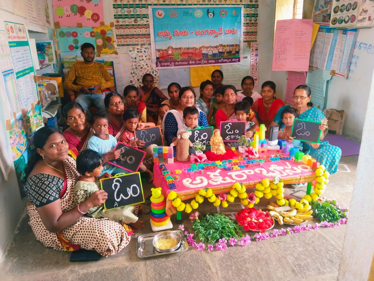 కొడిమ్యాల మండలంలోని పూడూరులో ఐ సి డి ఎస్ ఆధ్వర్యంలో మంగళవారం రోజున సామూహిక అక్షరాభ్యాసం కార్యక్రమాన్ని ఘనంగా నిర్వహించారు. ఈ కార్యక్రమానికి ముఖ్యఅతిథిగా హాజరైన ఐ సి డి ఎస్ సూపర్వైజర్ సుధారాణి. మాట్లాడుతూ ఫ్రీ ప్రైమరీ పిల్లలకు అక్షరాభ్యాసంతో చదువు నేర్చుకోవడం ఆరంభం జరుగుతుందని, తెలంగాణ ప్రభుత్వం అంగన్వాడి కేంద్రాలను మరింత పటిష్టం చేసిందని, అంగన్వాడీ కేంద్రాలలో ప్రీ ప్రైమరీ పిల్లలకు ఆంగ్ల విద్యను అందించడంలో అంగన్వాడి టీచర్లు సంసిద్ధతతో ఉన్నారని, అంగన్వాడి కేంద్రాలు ఆలనా – పాలన కేంద్రాలుగా పేరుగాంచాయని అన్నారు. ఈ కార్యక్రమంలో అంగన్వాడి టీచర్స్ సురేఖ.వసంత, స్నేహలత. పుష్పలత.పిల్లల తల్లులు ,ప్రీ ప్రైమరీ పిల్లలు, తదితరులు పాల్గొన్నారు.