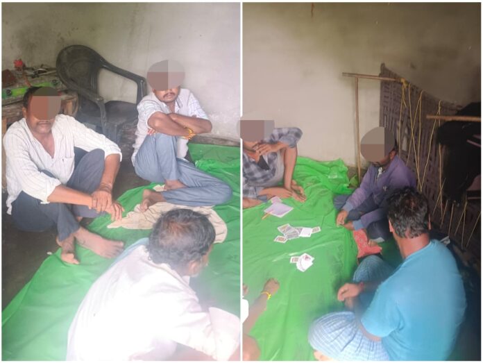 నేటి సాక్షి న్యూస్ చౌడేపల్లి అక్టోబర్ 22పేకాట ఆడుతున్న ఆరుగురుపై కేసు నమోదు చేసినట్లు ఎస్ఐ నాగేశ్వరరావు తెలిపారు ఆయన కథనం మేరకు… మండలంలోని పెద్ద కొండా మరి పంచాయతీ పెద్ద కొండా మరి బోయకొండ వెళ్లే మార్గంలో ప్రధాన రహదారి పక్కనే ఒకల కోళ్ల ఫారం నందు పేకాట ఆడుతున్నట్లు సమాచారం వచ్చింది వెంటనే పి.ఎస్.ఐ మణికంఠేశ్వర్ రెడ్డి సిబ్బందితో సరళి వెళ్లి పేకాట స్థావరంపై దాడి చేశారు ఈ దాడిలో ఆరుగురు పేకాటరాయుళ్లను అదుపులోకి తీసుకొని వారి వద్ద నుండి 52 పేక ముక్కలు రూ 10,140లు నగదు స్వాధీనం చేసుకుని వారిపై కేసు నమోదు చేసినట్లు తెలిపారు