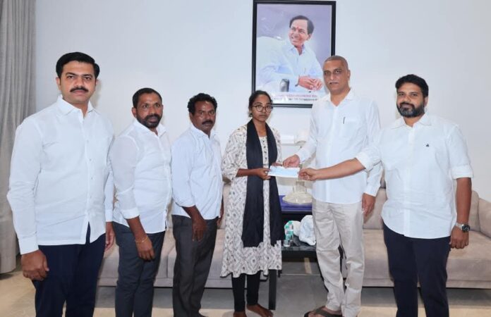 నేటి సాక్షి గోదావరిఖని (రమేష్)పేద బిడ్డ కు వ్యాల్ల హరీష్ రెడ్డి (బి ఆర్ ఎస్ రాష్ట్ర నాయకులు రామగుండం నియోజకవర్గం) ఆర్ధిక చేయూత. మాజీ మంత్రి బిఆర్ఎస్ పార్టీ అగ్ర నాయకులు, సిద్దిపేట శాసనసభ్యులు తన్నీరు హరీష్ రావు అన్న సమక్షంలో సిద్దిపేటలోని సురభి మెడికల్ కళాశాలలో ఎంబిబిఎస్ సీట్ దక్కించుకొని ఆర్థికంగా సాయం కోసం ఎదురుచూస్తున్న ఒక దళిత బిడ్డ సౌజన్య కు కాలేజీ ఫీ కోసం లక్ష యాభై వేల రూపాయలు (1,50,000/-) ఆర్థిక సహాయం చేయడం జరిగింది. సందర్భంగా హరీష్ రావు ఎంబిబిఎస్ విద్యార్థిని సౌజన్య కి శుభాకాంక్షలు తెలుపుతూ భవిష్యత్తులో ఎటువంటి అవసరం ఉన్న సిద్దిపేటలోని తన ఆఫీసులో సంప్రదించమని తెలుపుతూ ఆల్ ది బెస్ట్ చెప్పడం జరిగింది.కార్యక్రమం లో మాజీ కార్పొరేషన్ చైర్మన్ డా. ఎర్రోళ్ల శ్రీనివాస్, సీనియర్ నాయకులు అభిలాష్ రంగినేని పాల్గొనడం జరిగింది.