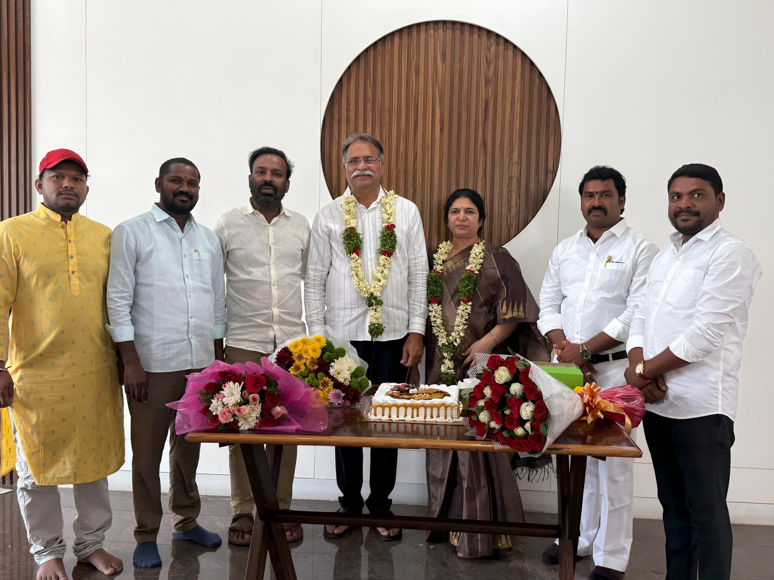 నేటి సాక్షి, ఎండపల్లి:* కాంగ్రెస్ పార్టీ రాష్ట్ర నాయకులు పొనుగోటి శ్రీనివాసరావు–మంజుల దంపతుల 33వ వివాహ వార్షికోత్సవం గురువారం హైదరాబాద్లోని వారి నివాసంలో ఘనంగా జరిగింది. ఈ సందర్భంగా పలువురు రాష్ట్ర, జిల్లా స్థాయి నాయకులు, సర్పంచులు, అభిమానులు వారి నివాసానికి చేరుకుని దంపతులకు ఆత్మీయంగా శుభాకాంక్షలు తెలిపారు. పుష్పగుచ్ఛాలు అందజేసి, వారి దాంపత్య జీవితం మరింత ఆనందంగా, ఆయురారోగ్యాలతో కొనసాగాలని ఆకాంక్షించారు. పార్టీ బలోపేతానికి, ప్రజా సేవలో పొనుగోటి శ్రీనివాసరావు అందిస్తున్న సేవలను నాయకులు ప్రశంసిస్తూ, భవిష్యత్తులో మరింత ఉన్నత స్థాయిలో సేవలందించాలని ఆకాంక్షించారు. ఆత్మీయత నిండిన వాతావరణంలో జరిగిన ఈ వేడుకలో పలువురు ముఖ్య నాయకులు పాల్గొని దంపతులతో సంతోషాన్ని పంచుకున్నారు. కాగా శుభాకాంక్షలు తెలిపిన ప్రతి ఒక్కరికీ పొనుగోటి దంపతులు హృదయపూర్వక కృతజ్ఞతలు తెలిపారు. ఈ కార్యక్రమంలో మాజీ ఎంపీ బోర్లకుంట వెంకటేష్ నేత, సర్పంచులు గొల్లపల్లి మల్లేశం గౌడ్, బెడ్డల ప్రవీణ్, నాయకులు అవుల తిరుపతి తదితరులు పాల్గొన్నారు.